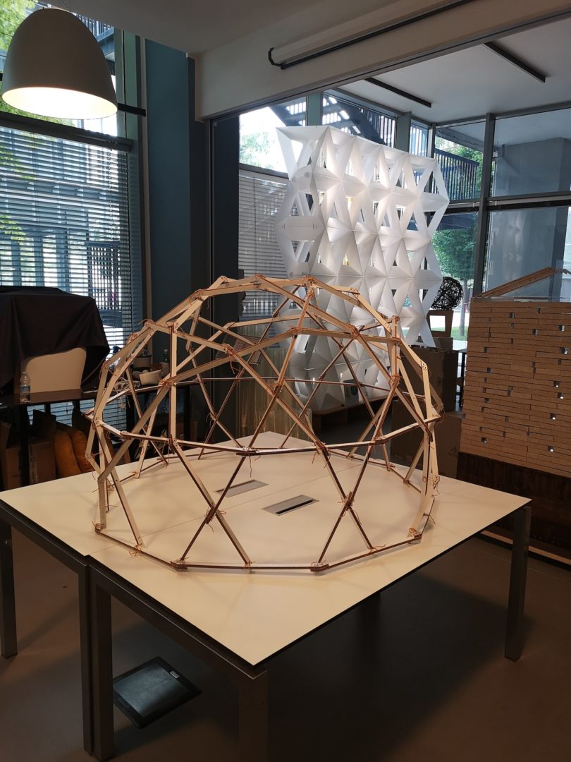 Il Basketry Tensegrity Geodesic Dome, esposto sulle Terrazze Bonardi del Politecnico di Milano, è il risultato di un percorso di ricerca che incrocia storia e sperimentazione avanzata.