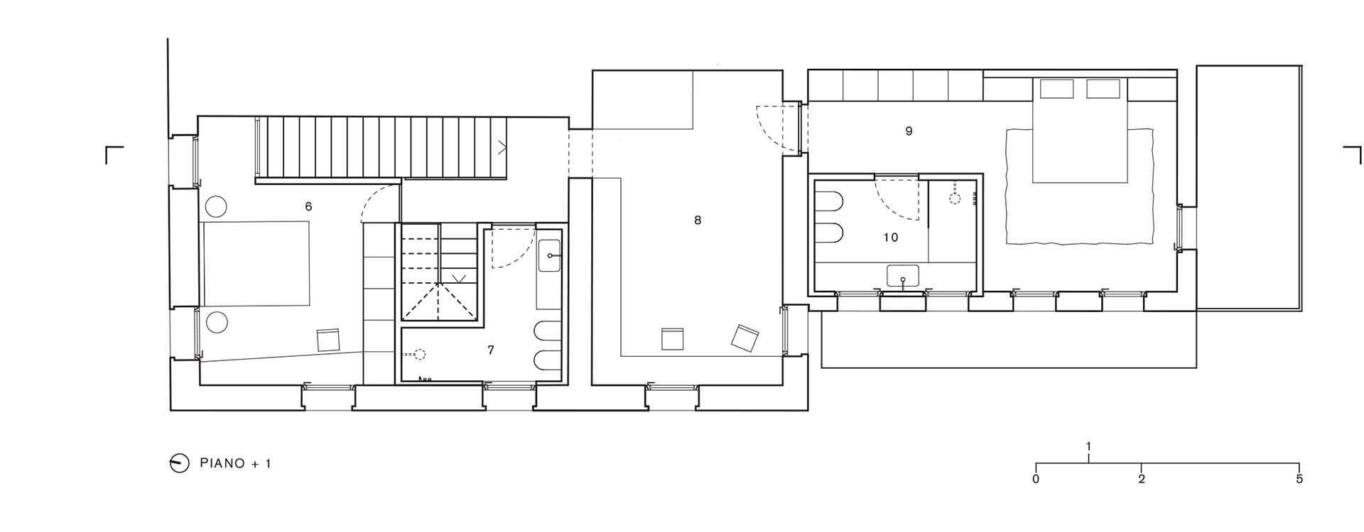 Il progetto si compone di una serie di interventi puntuali sulle strutture preesistenti finalizzati a incrementare la permeabilità tra i singoli ambienti dell’abitazione e tra gli spazi interni ed esterni, come nel caso della trasformazione del piano terra della porzione più recente in un’unica stanza polifunzionale che vuol essere anche una loggia.