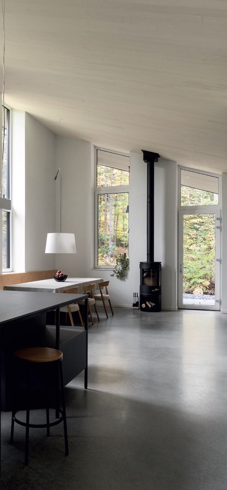 Immersa tra aceri e abeti nella regione canadese del Quebec, la casa studio di una coppia di creativi accosta spazi abitativi e laboratori in un ambiente non convenzionale