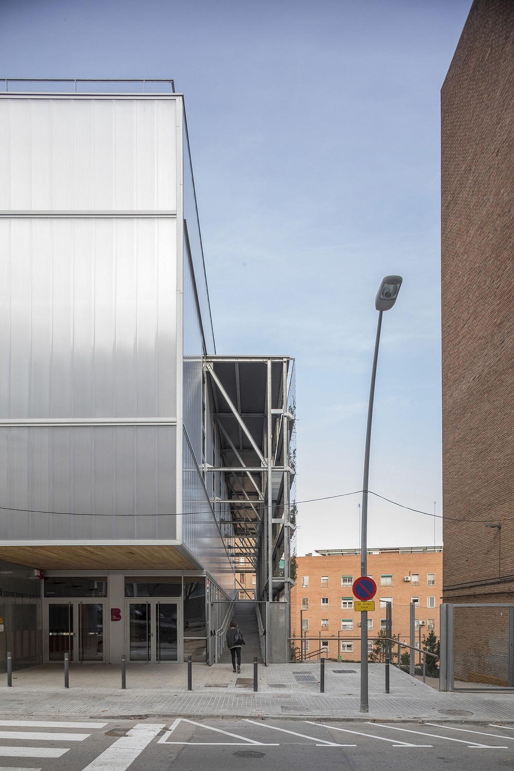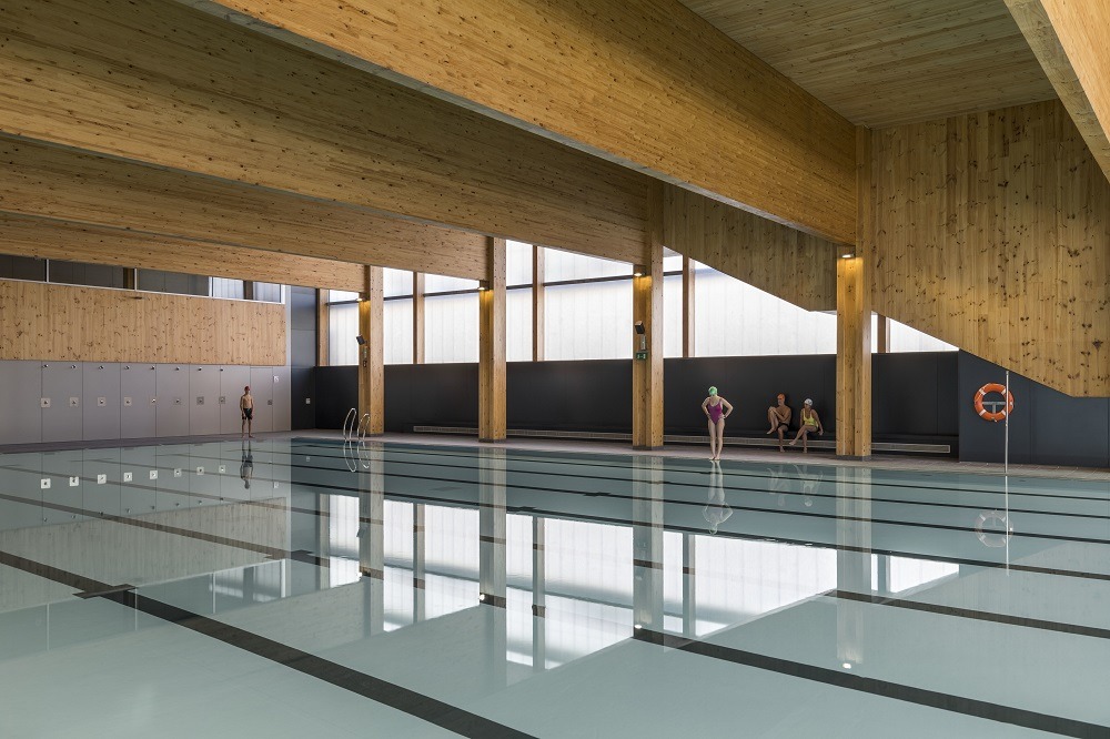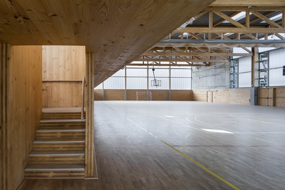 Nel 2014 il Consiglio comunale di Barcellona ha indetto un concorso di architettura per la progettazione del landscape di un quartiere urbano comprendente un impianto sportivo costituito da una piscina interna e un campo sportivo. La proposta vincente è stata selezionata e apprezzata per l’integrazione paesaggistica e l’impegno per la sostenibilità e il rispetto dell’ambiente, in grado di migliorare un quartiere, quello di Turó de la Peira, caratterizzato da un’alta densità urbana di alloggi sociali degli anni ‘60 e da una totale assenza di vegetazione. La nuova struttura risulta per un quarto interrata per adattarsi alla topografia del territorio e colmare il dislivello tra le due strade su cui affaccia. All’interno, il campo sportivo del piano superiore si sovrappone alla piscina riscaldata del piano terra.