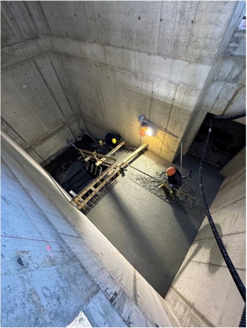 La platea di fondazione, che copre una superficie di 7.000 metri quadrati, è stata eseguita quasi completamente nei mesi più freddi dell’anno per evitare problematiche nella maturazione del calcestruzzo. Il getto è stato quindi eseguito in conci di circa 700/800 metri quadri ognuno.