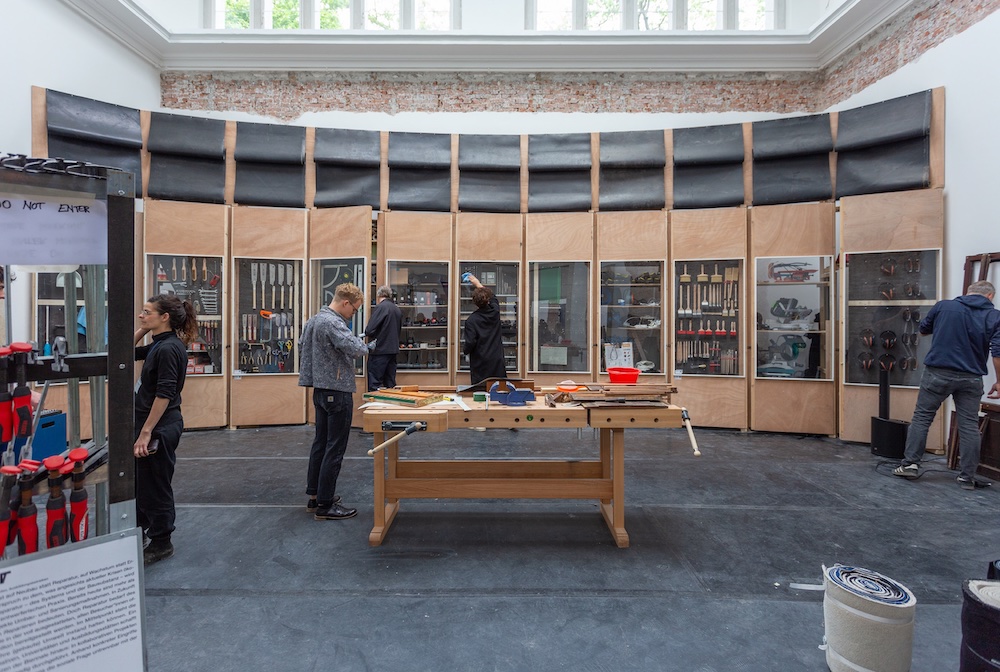 La cultura del costruire secondo criteri di circolarità è al centro della riflessione della partecipazione tedesca. Un padiglione che anziché esporre il tema lo mette in pratica. Si mostra il processo di recupero e la lavorazione di materiali di scarto provenienti da più di 40 padiglioni nazionali che hanno partecipato alla Biennale Arte nel 2022. Esibire i residui delle mostre precedenti in forme scenografiche o tassonomiche è un tema già visto nelle ultime edizioni. Si pensi, per esempio, all’apertura alle corderie della Biennale di Alejandro Aravena del 2016 o al padiglione giapponese del 2021. L’enfasi è quindi posta sull’impatto glocale dell’architettura circolare, che se da un lato guarda alle sfide globali del «pensare di più e costruire di meno», dall’altro considera le necessità locali, sia dei gruppi più svantaggiati di Venezia sia di chi userà questo spazio espositivo fino a novembre 2023. E, quindi, una rampa, un deposito materiali, uno spazio di lavoro, un bagno, una cucina, uno spazio di incontro, sono tutti spazi a sostegno di una permanenza sostenibile durante la kermesse veneziana. Ma che cosa si costruirà? Il workshop, che prevede la partecipazione di attori locali, intende realizzare piccoli interventi su Venezia al servizio della popolazione residente, agendo come un’infrastruttura produttiva in contrapposizione rispetto ai trend di mercificazione della città.