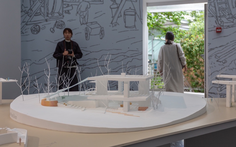 Il padiglione cinese è una lettera d’amore a Venezia, nelle parole del curatore Xing Ruan, una testimonianza di come la capacità delle persone di adattarsi e cambiare lo status quo possa portare verso nuove forme di abitare, attente alle sfide contemporanee, ma anche alle radici culturali, un tema importante per la Cina odierna. L’allestimento simula un colonnato che riecheggia l’architettura dell’arsenale, attraversando il quale si evoca un’esperienza urbana. Sul pavimento si leggono alcuni numeri della corsa allo sviluppo della Cina, mentre nelle colonne, che alludono ai fogli arrotolabili e al modo di leggere il genere pittorico classico del paesaggio, è custodita una selezione di progetti realizzati nella Repubblica Popolare e a Shanghai, assunta a caso notevole. Il pavimento specchiato amplifica l’esperienza sensoriale della passeggiata mettendo in risalto il rapporto tra le architetture dell’arsenale e quelle della Cina contemporanea, in una narrazione simbiotica. All’esterno si trova un’installazione che mette a confronto due modalità insediative opposte: l’occupazione del suolo, sul perimetro e al centro, alludendo alle tipologie architettoniche dell’edificio a corte e a padiglione.