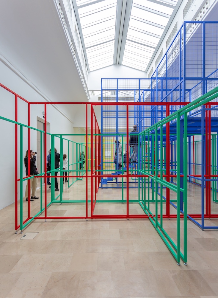 Dalla riflessione sul rurale di Trouble in Paradise dell’edizione precedente, quest’anno la Polonia ci porta nel mondo digitale, nella sua sovra produzione di dati, di cui spesso recepiamo immagini distorte da algoritmi manipolatori. Tale è infatti l’installazione in tubolari di acciaio colorati, che riproduce un’elaborazione digitale fuorviante di quattro ambienti domestici selezionati sulla base della quantità di dati digitali disponibili, da molti a pochi. La traduzione fisica di un’elaborazione virtuale è fallace, eppure su questi simulacri e sull’acquisizione acritica di dati di cui non conosciamo né l’origine né l’elaborazione, basiamo sia scelte quotidiane che strategiche. Se per l’Austria, due anni fa, i dati digitali erano comprensibilmente una relazione, per tutti noi l’unica durante la pandemia, oggi, per la Polonia, i dati sono un’istituzione che va oltre la nostra capacità di controllo: come ridefinire il rapporto tra virtuale e reale, ammesso e non concesso di essere ancora in tempo?
