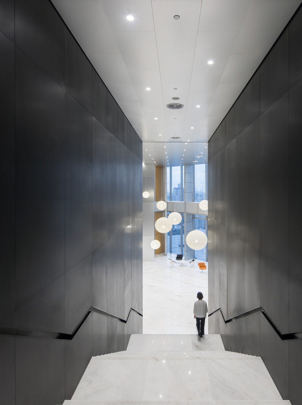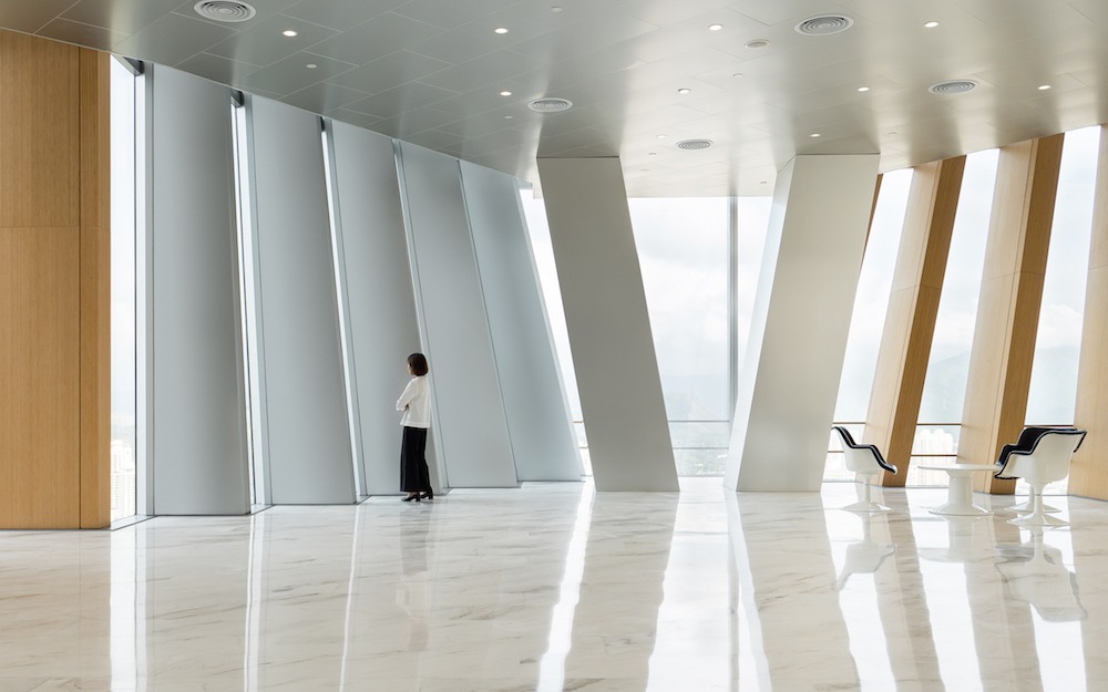 Da questo punto di vista, nella sua semplicità, la seghettatura dell’involucro appare una soluzione convincente, che qualifica l’edificio sia come oggetto indipendente che come sistema urbano. Infatti, da una parte, essa dona un’eleganza non riconoscibile negli edifici limitrofi, facendone il vero tratto distintivo. Dall’altra, la partitura verticale favorisce la lettura di un nuovo paesaggio urbano composto dalla sequenza dei tre volumi leggibili come una composizione piuttosto che come un’addizione, fatto che rappresenta una tappa significativa nello sviluppo metropolitano di Shenzhen.
