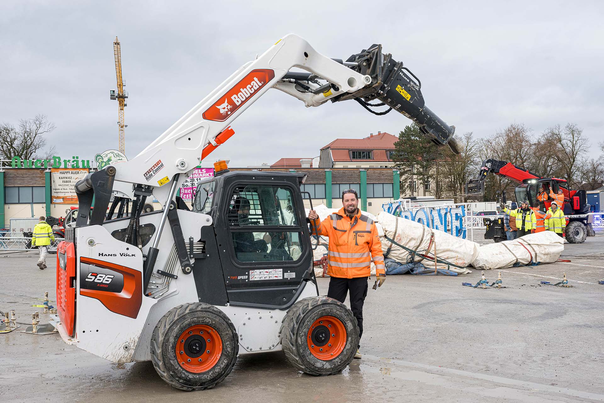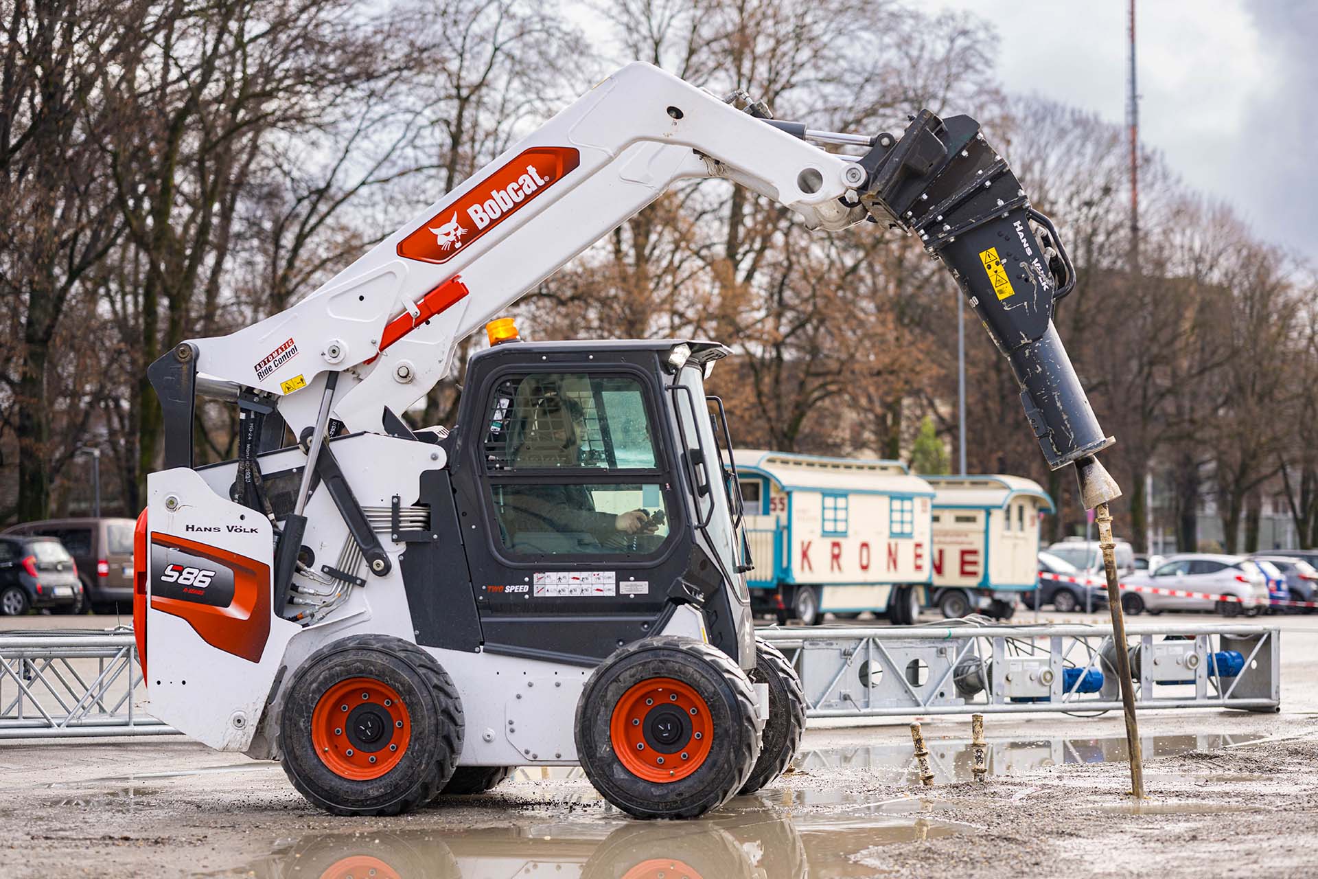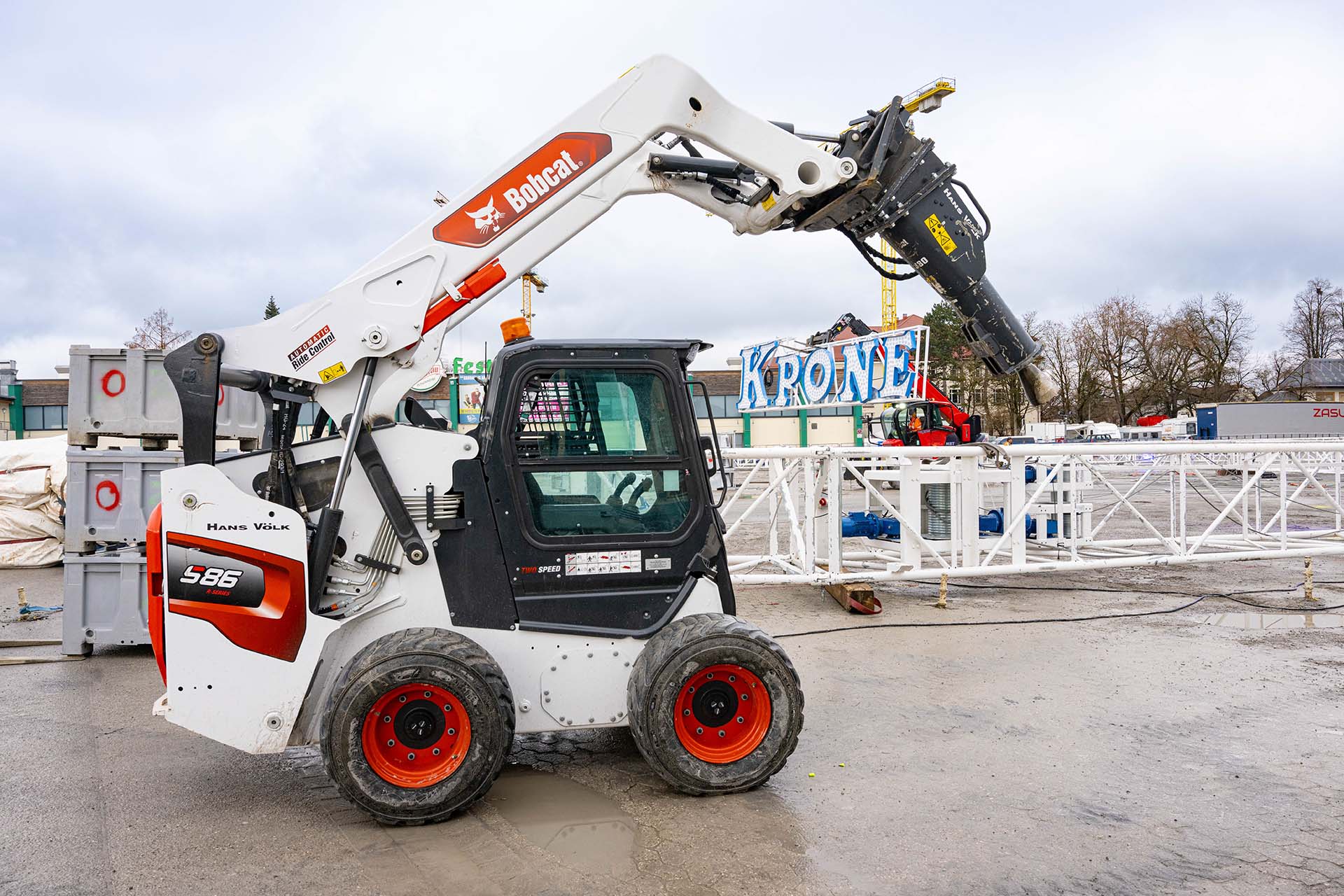 La Bobcat S86 utilizzata dal Circus Krone è stata importata dagli Usa e equipaggiata con il martello idraulico più potente normalmente montato su escavatori da 10 tonnellate.