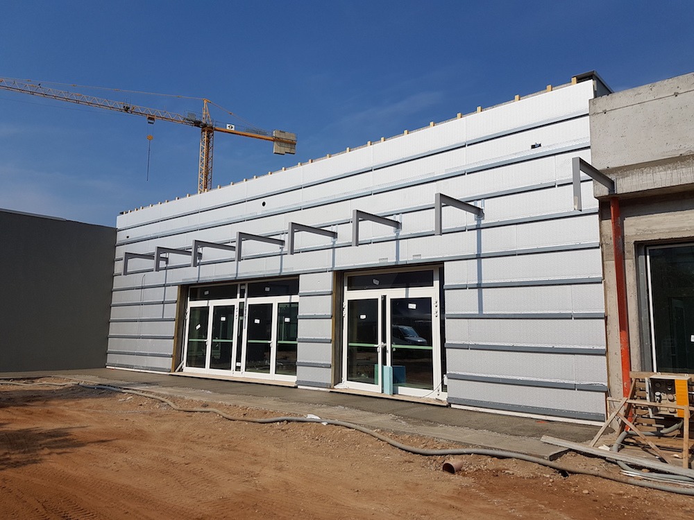 Il sistema di isolamento termico ventilato Isotec Parete di Brianza Plastica, utilizzato per la coibentazione del corpo centrale dell’edificio, in corrispondenza degli ingressi frontale e posteriore, è costituito da un pannello in poliuretano espanso rigido autoestinguente rivestito da una lamina in alluminio goffrato e da un correntino asolato in acciaio protetto integrato nel pannello in fase produttiva. Il correntino, creando un’orditura metallica portante, risulta funzionale al fissaggio del rivestimento esterno e, al tempo stesso, crea la camera di ventilazione fra la cortina esterna e l’isolante.