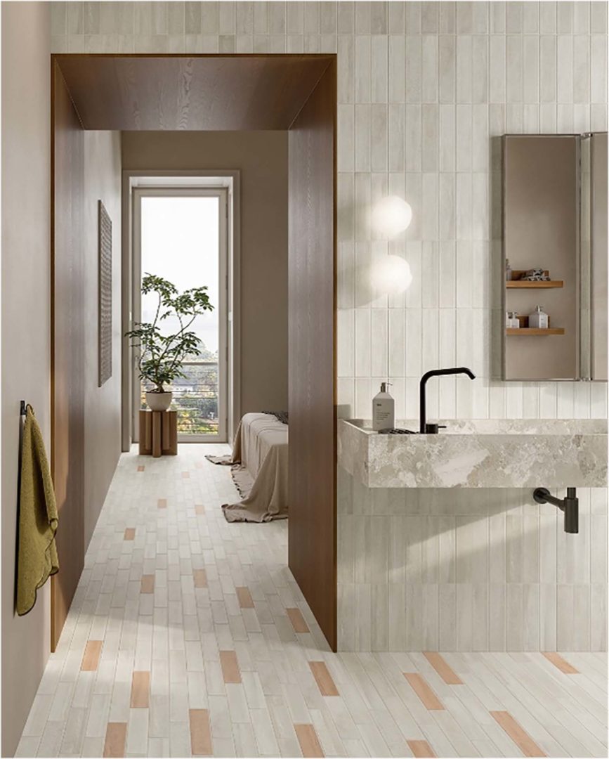 Due linee complementari che esplorano il colore, la luce e la tattilità del gres porcellanato attraverso formati allungati, palette ricercate e superfici pensate per dare carattere agli ambienti residenziali e commerciali.