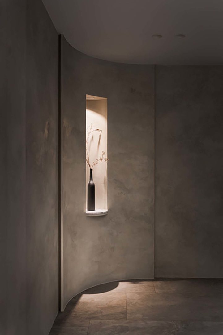 La texture morbida e naturale di CalceCruda modula luce, colore e profondità con sfumature delicate e mai ripetitive. Le superfici che ne derivano sembrano scolpite dal tempo più che applicate: muri che respirano, che assorbono e riflettono la luce, che custodiscono una storia fatta di imperfezioni e vibrazioni materiche.