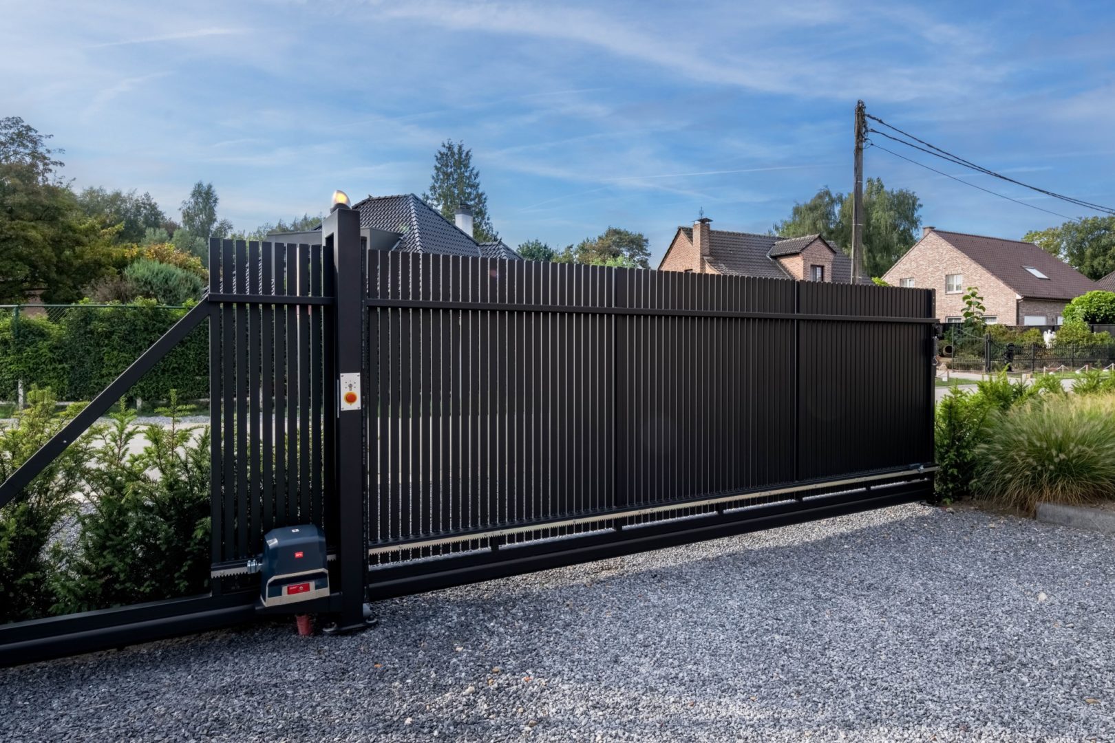 Un ulteriore punto di forza è l’integrazione con sistemi di automazione avanzata. I cancelli possono essere controllati tramite telecomando, tastierino o smartphone, offrendo comfort e sicurezza anche in condizioni climatiche avverse.