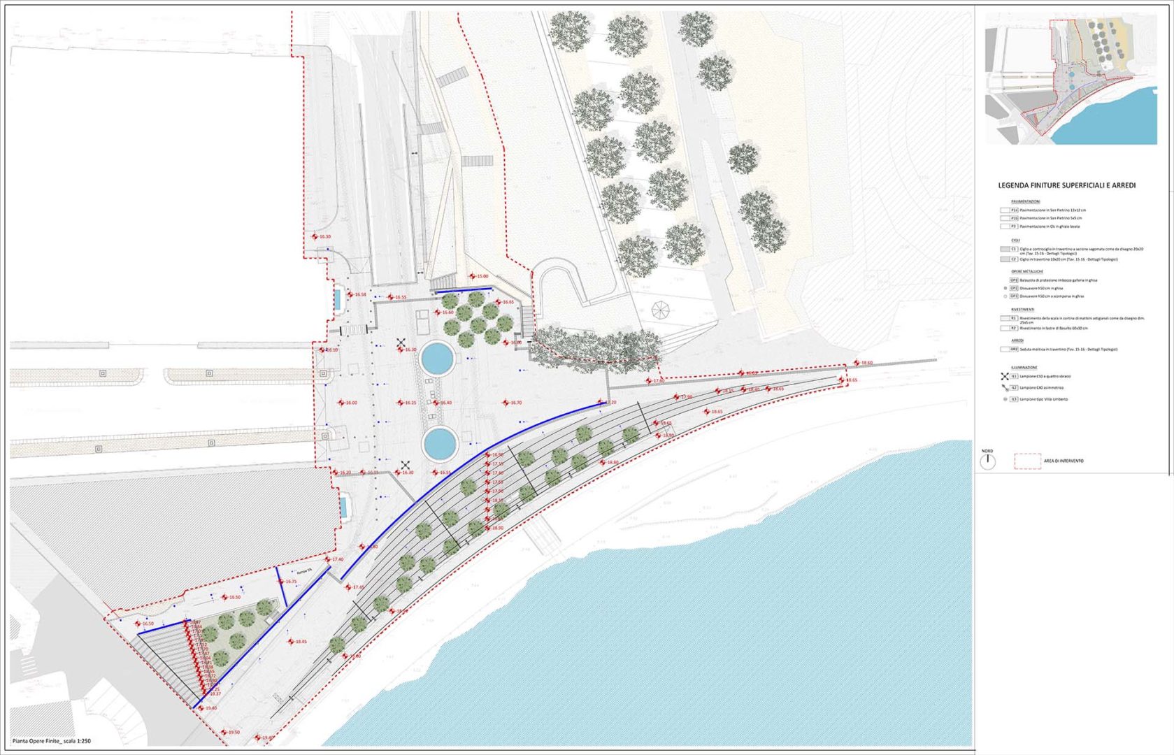 In particolare, il progetto ha previsto il miglioramento del rapporto tra l’area pedonale centrale e il Lungotevere, mediante la realizzazione di una cordonata sistemata a verde, immaginata come un luogo di sosta.