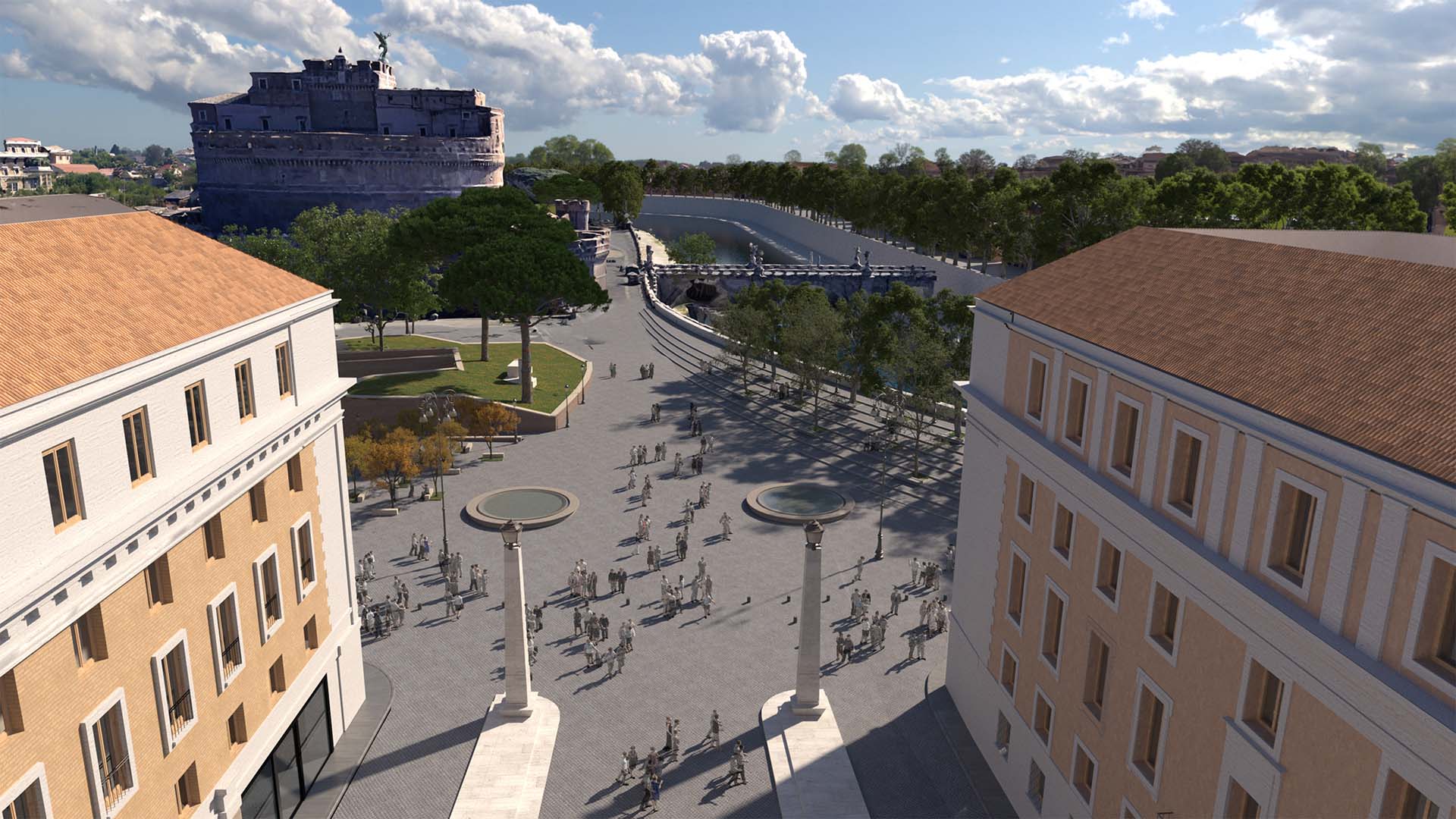 La realizzazione della nuova grande piazza pedonale ha permesso di unire l’area di Castel Sant’Angelo a via della Conciliazione e, per estensione, alla Basilica di San Pietro, ottenendo così una pedonalizzazione che ha garantito la fruizione dell’area in piena sicurezza e una fluidificazione del traffico veicolare grazie al nuovo sottovia, collegato a quello di Lungotevere in Sassia, già esistente e recentemente riqualificato dal Dipartimento Csimu dell’assessorato ai Lavori pubblici di Roma Capitale.