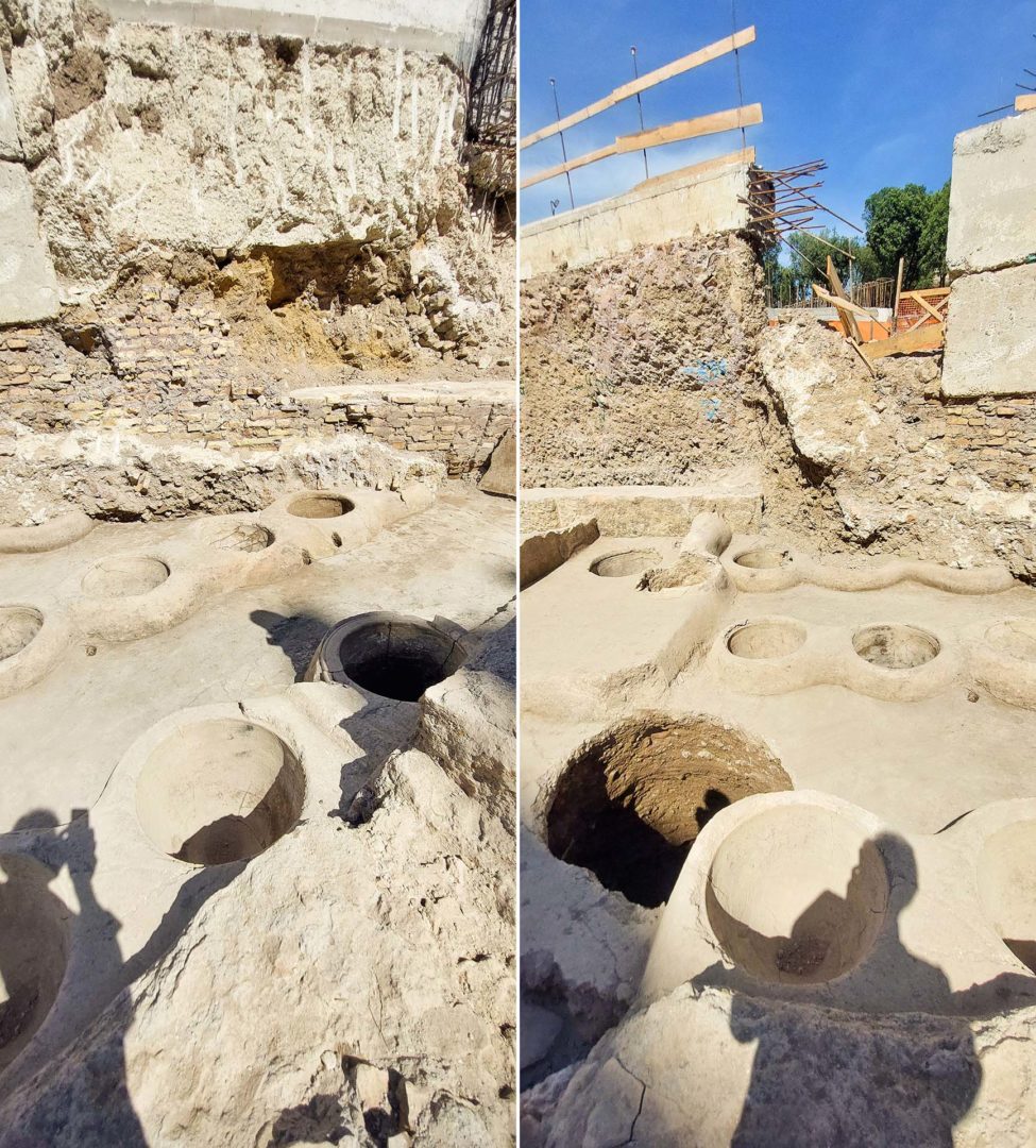 Durante i lavori è stata infatti ritrovata una fullonica, ovvero una lavanderia e tintoria dell’epoca romana, nonché un muro risalente a una costruzione dell’imperatore Caligola.