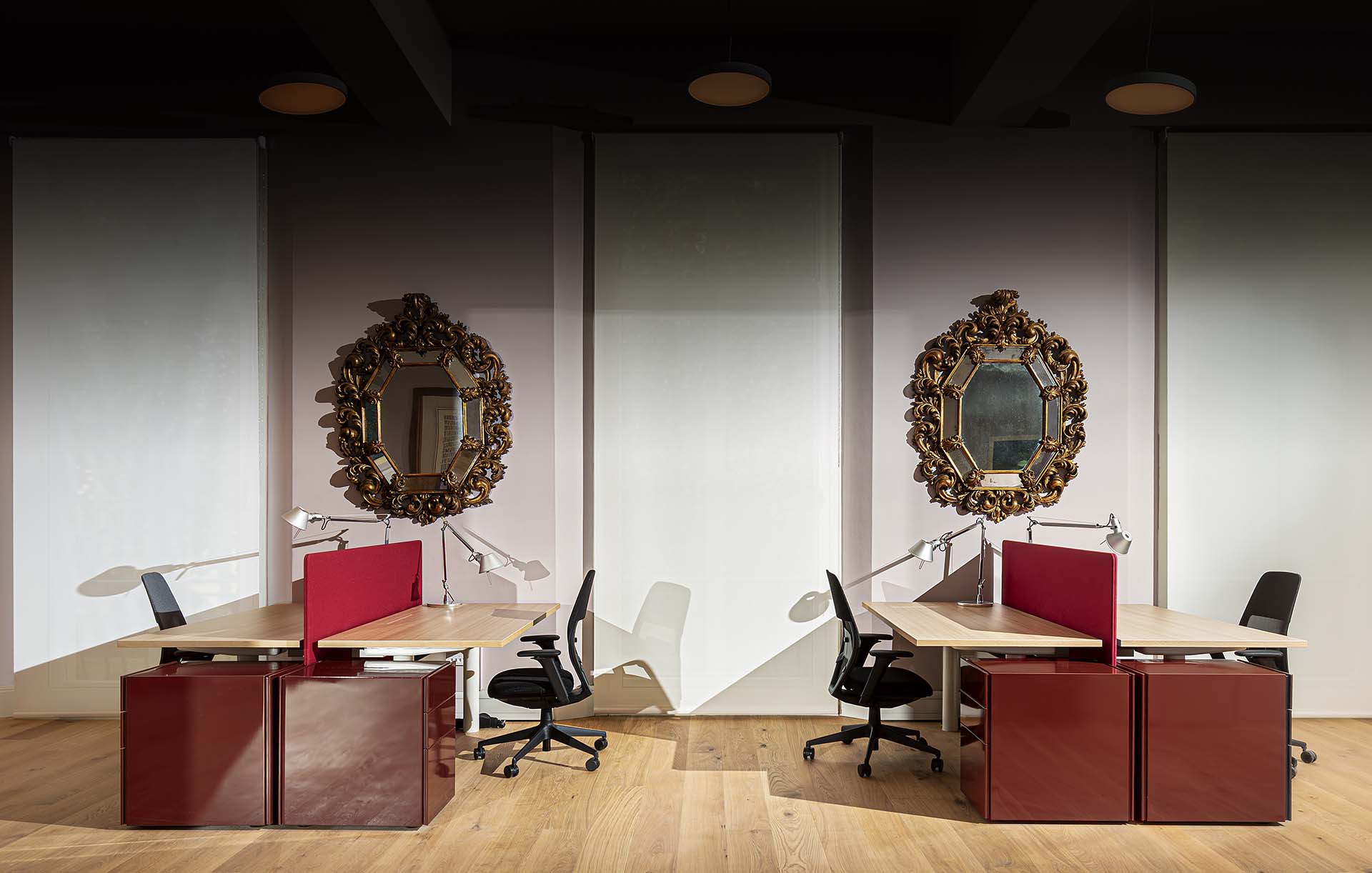Le superfici in legno firmate Listone Giordano contribuiscono a definire l’immagine materica e simbolica degli interni.