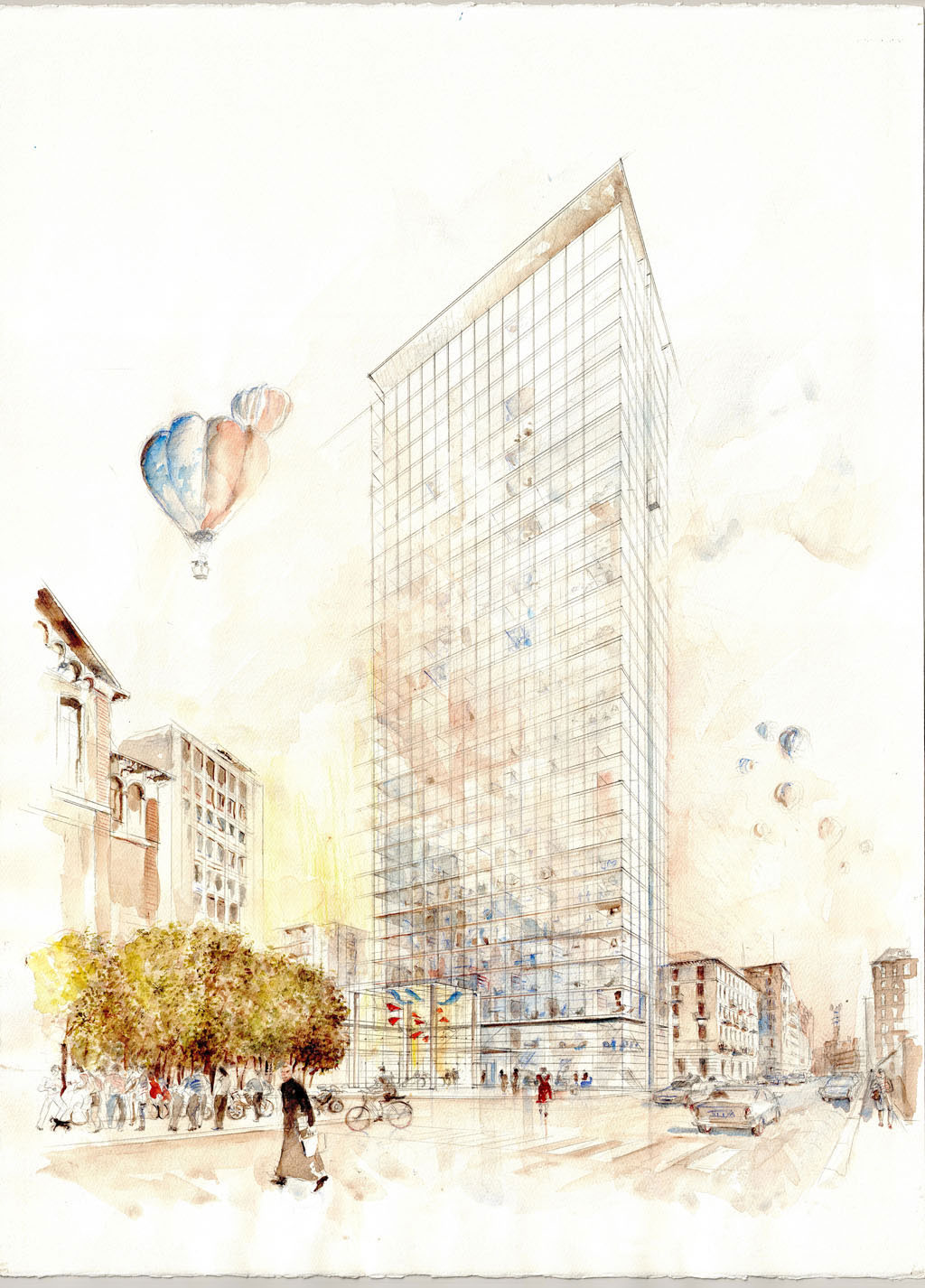 Saliti al 31esimo piano si può osservare fin da subito l’ultima sfida della cooperativa: la ristrutturazione della Torre Galfa (qui trovate la sua storia), l’edificio alto più vicino al Pirellone. Appena più in là c’è Torre Regione Lombardia, e continuando verso sinistra le Torri Residenziali Varesine e la Torre Diamante, passando dalla Fondazione Feltrinelli, fino alla Torre Generali di CityLife. Tutte opere di CMB, che non ha per nulla finito di plasmare il territorio milanese e modificarne lo skyline, grazie alla continua collaborazione con famosi progettisti. Come avverrà per la nuova sede di Unipol di Mario Cucinella o la Torre Libeskind dell’omonimo architetto di fama internazionale.