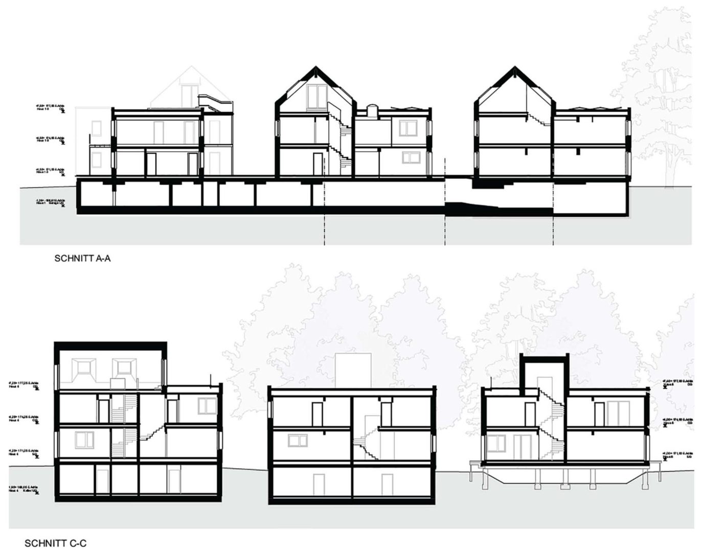 L’obiettivo principale era la creazione di una relazione armonica tra insediamento e contesto naturale. Gli edifici sono stati concepiti per integrarsi nel paesaggio fluviale, minimizzando l’impatto ecologico e offrendo un’alternativa al modello diffuso della casa unifamiliare isolata.
