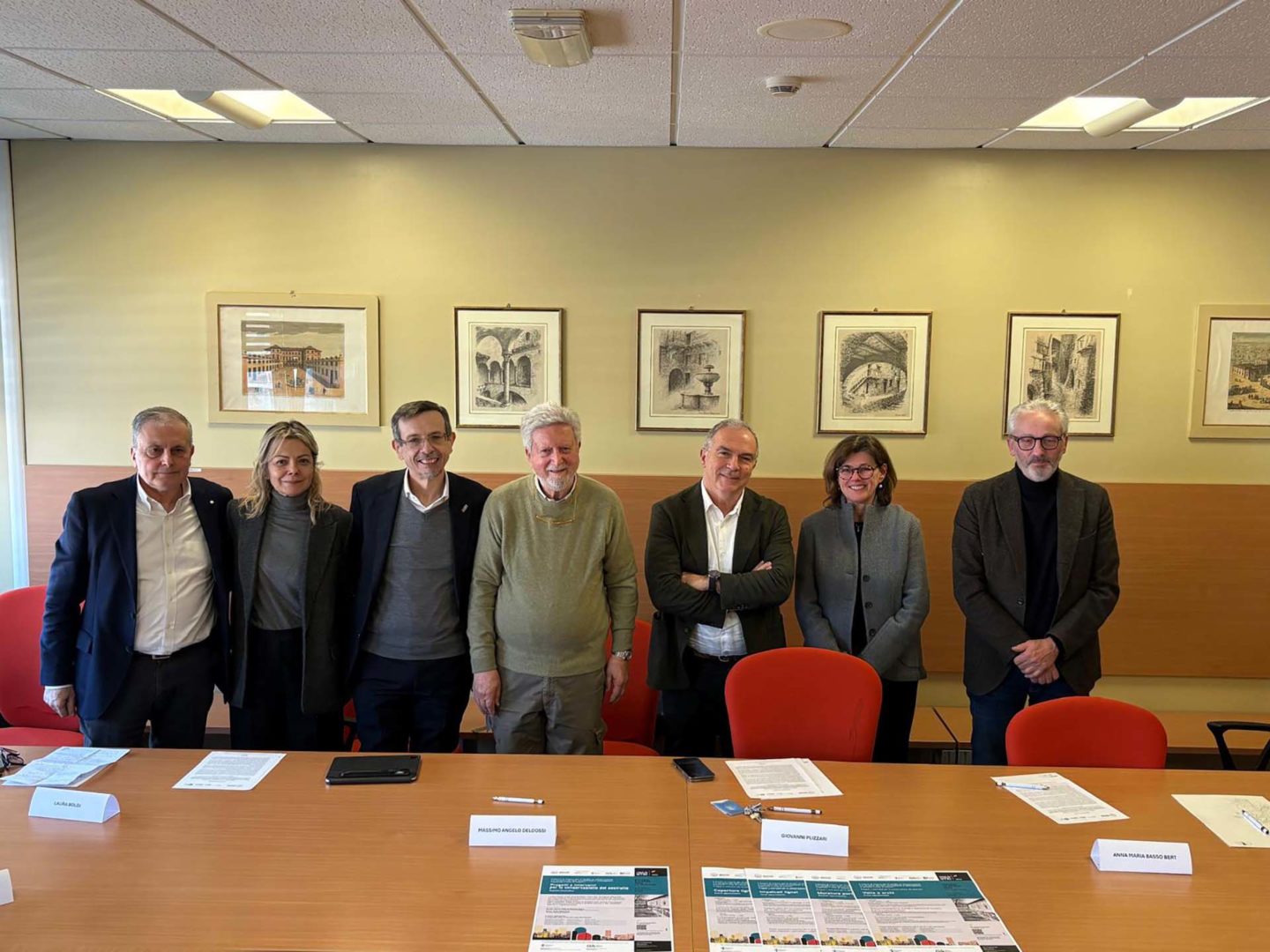Da sinistra: Adriano Baffelli, Laura Boldi, Massimo Angelo Deldossi, Ezio Giuriani, Giovanni Plizzari, Maria Basso Bert e Luigi Scanzi