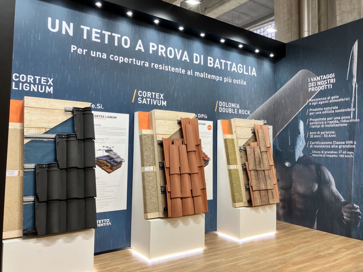 Accanto a questa proposta, lo stand ospita Dolomia Double Rock, un sistema pensato per le coperture in legno.