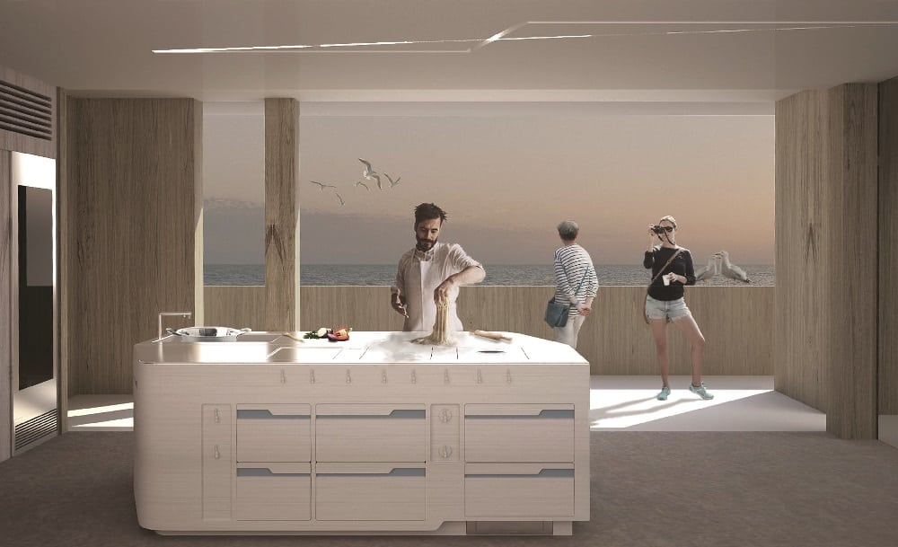 Insieme ad architetti, designer e chef, gli studenti provenienti da tutto il mondo hanno potuto progettare cucine per appassionati e aspiranti chef, col fine di ibridare le competenze disciplinari del disegno industriale a quelle dell’architettura, passando attraverso lo studio della tecnologia di prodotti e materiali e dell’evoluzione delle abitudini culturali e sociali. Venere Ferraro, docente del master con Federico Elli e Riccardo Negri, ha dato un tema preciso agli studenti accoppiando tre tipologie di protagonisti ad altrettante tipologie di spazio: lo chef di uno yacht privato, la food blogger nel suo spazio di cucina outdoor e l’aspirante chef nella sua cucina di casa. Tre situazioni-tipo per altrettanti spazi da progettare da zero seguendo le attitudini e le necessità dei protagonisti, ma anche le tecnologie e le competenze messe a disposizione da Frigo2000 e da Abimis.
