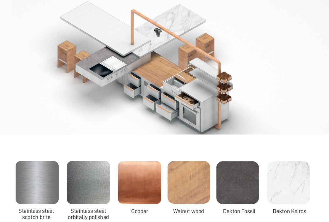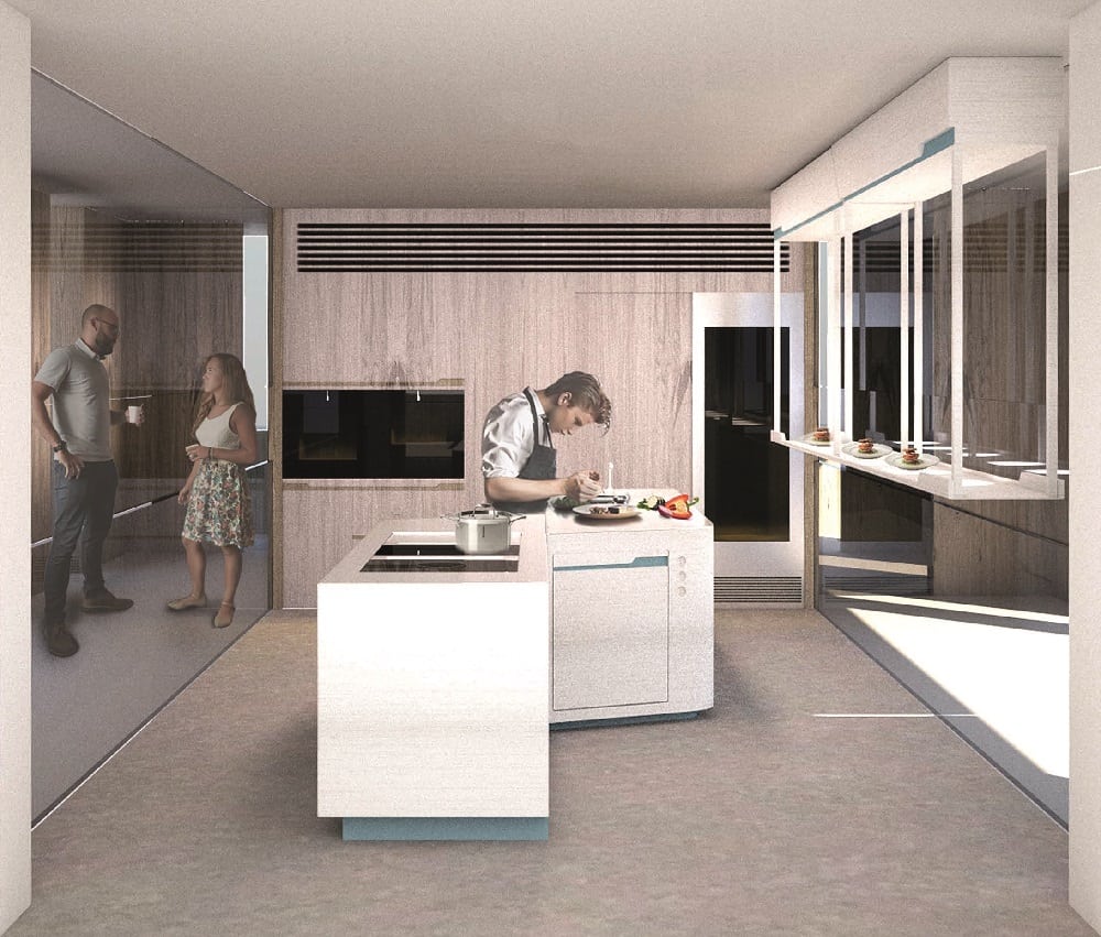 Elementi fondamentali per il verdetto finale sono stati la funzionalità, la possibilità di mostrare il cibo dalla sua preparazione alla sua mise en place, e la massima fluidità dei movimenti di chi opera in cucina. Sono stati quindi pensati volumi che traslano e slittano, dettagli che permettono di aprire ante, superfici e oggetti e di bloccarli al tempo stesso, materiali che si adeguano alle azioni dei cuochi, per rendere la cucina personalizzabile e adattabile alle necessità. In più, frigoriferi con chiusure trasparenti che permettono di vedere ed esporre al tempo stesso, piani cottura che si integrano, aspirano e si muovono con il volume che li contiene: tutto ciò non è futuro, ma quanto è possibile avere oggi in casa unendo la progettazione al prodotto.