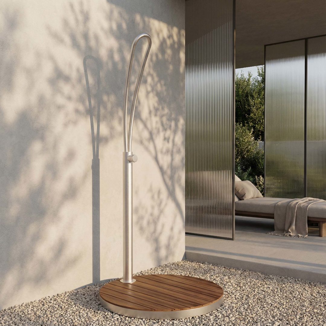 A queste si aggiunge la versione freestanding con pedana in Teak, che combina la purezza dell’acciaio con il calore del legno, scelto per la sua robustezza e il suo carattere contemporaneo.