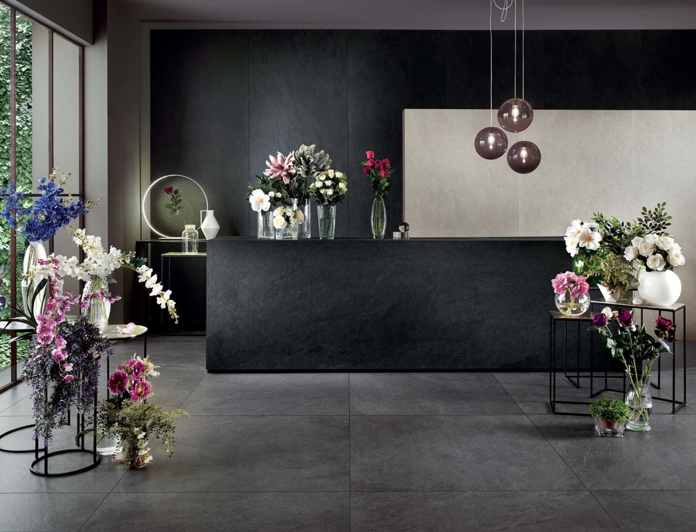 Le superfici che evocano la potenza della natura sono protagoniste di una nuova estetica materica. La collezione Waterfall interpreta la pietra con irregolarità, variazioni cromatiche e un carattere deciso.
