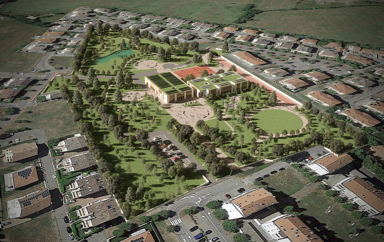 Il progetto dei nuovi poli scolastici si fonda sulla concezione multiscalare dello spazio. L’elemento che accomuna le diverse scale di progetto è la concezione del nuovo insediamento come luogo di relazioni, sia spaziali che semantiche e percettive, promosse da un accurato disegno del masterplan, delle tipologie, delle componenti tecnologiche e materiche.