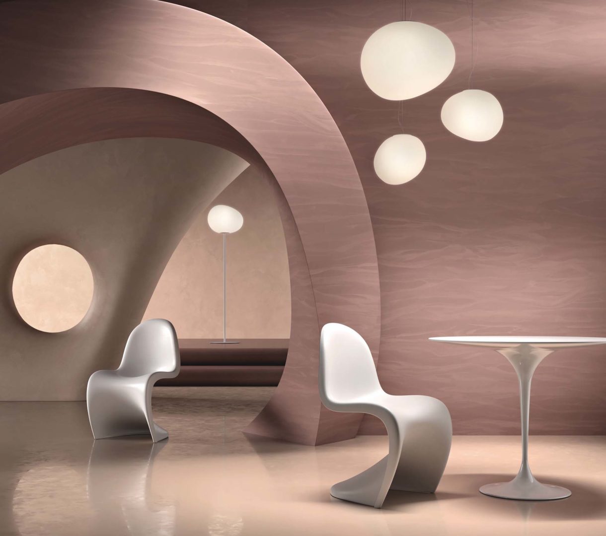 Per dare corpo a questa visione, l’azienda seleziona quattro prodotti – Marmorino Fine, Intonachino Minerale, Antica Calce e Antica Calce Elite – ognuno portatore di una propria identità estetica.