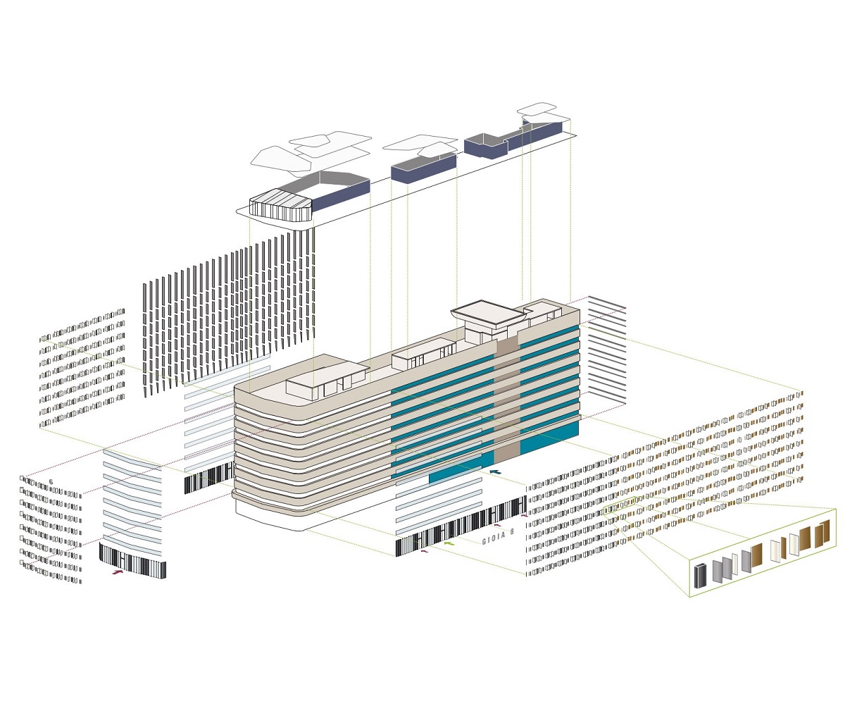 Presentiamo in queste pagine due progetti di riqualificazione di edifici per uffici a Milano, ad opera di Park Associati, che interpretano questa tematica con approcci affini ed esiti indipendenti, radicati nel contesto in cui si inseriscono: Gioiaotto e La Serenissima. I due progetti sono valsi rispettivamente il riconoscimento Leed Platinum (primo edificio a Milano) e Leed Gold. Il primo è un edificio originariamente denominato Residence Porta Nuova, ultimato nel 1973 su progetto di Marco Zanuso e Pietro Crescini. Si caratterizza per un accentuato senso di orizzontalità che permea il disegno dei prospetti, trattati come un’unica superficie che avvolge gli spazi per uffici e l’hotel.