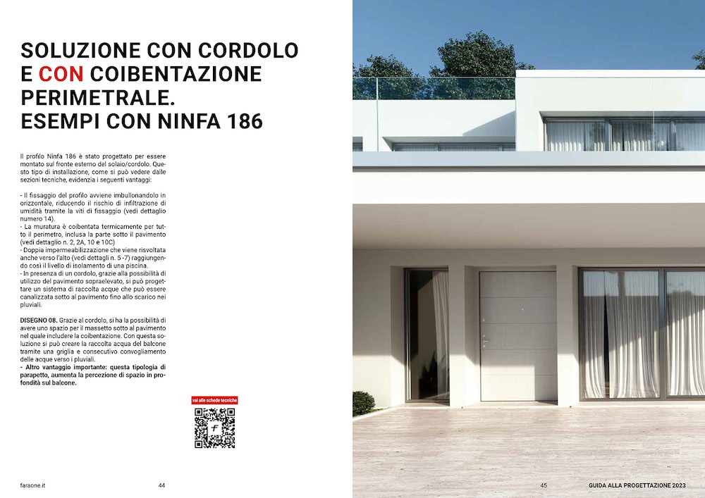 Per la creazione del volume, Faraone ha collaborato con una serie di partner di fiducia nel settore, inclusi Hilti per i fissaggi, Index per le impermeabilizzazioni, Dosteba per la coibentazione rigida, Arredil per i canali di raccolta acqua in versione affogata, e Malagrisa per i canali di raccolta acqua indipendenti. Queste collaborazioni hanno permesso di creare un’opera completa che copre tutti gli aspetti della progettazione dei parapetti in vetro.