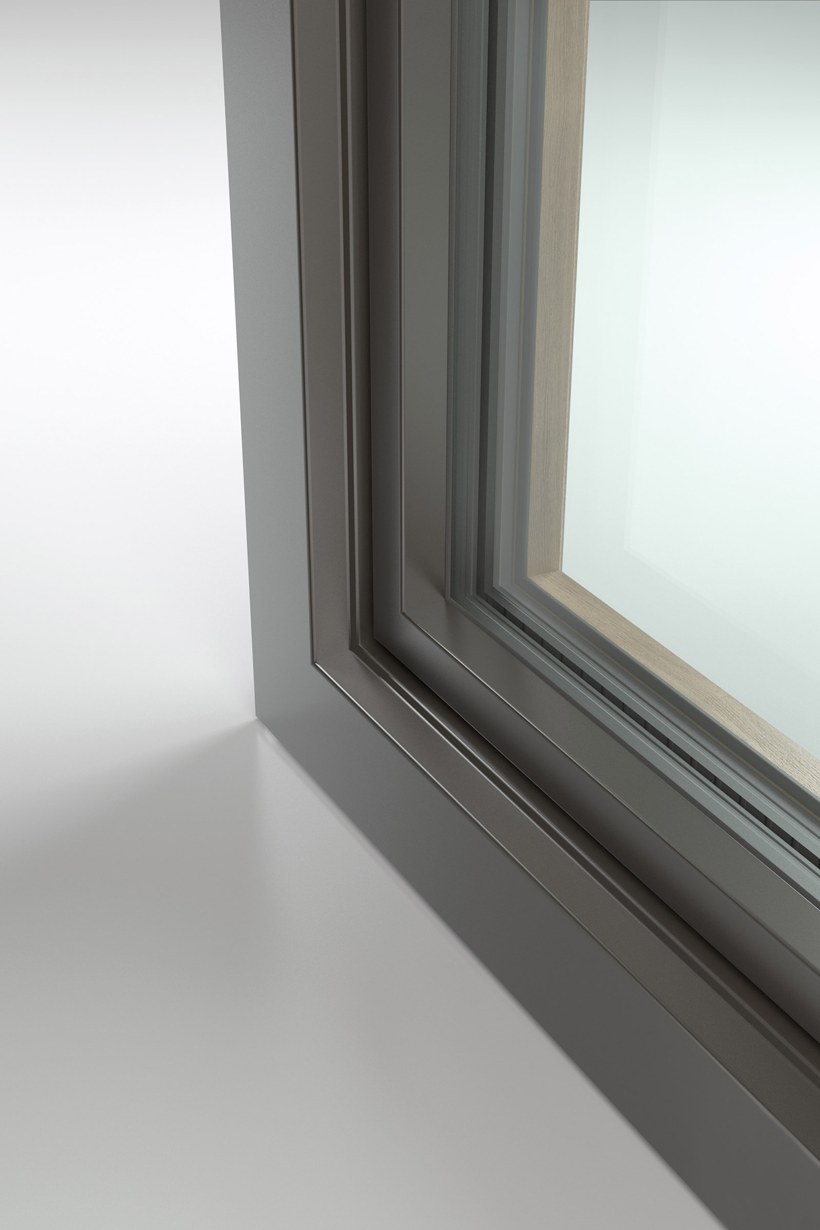Immagine 3 – Serramento FIN-Ligna anta Slim-line alluminio-legno, dettaglio giuntura profili a 45° (vista esterno in alluminio)