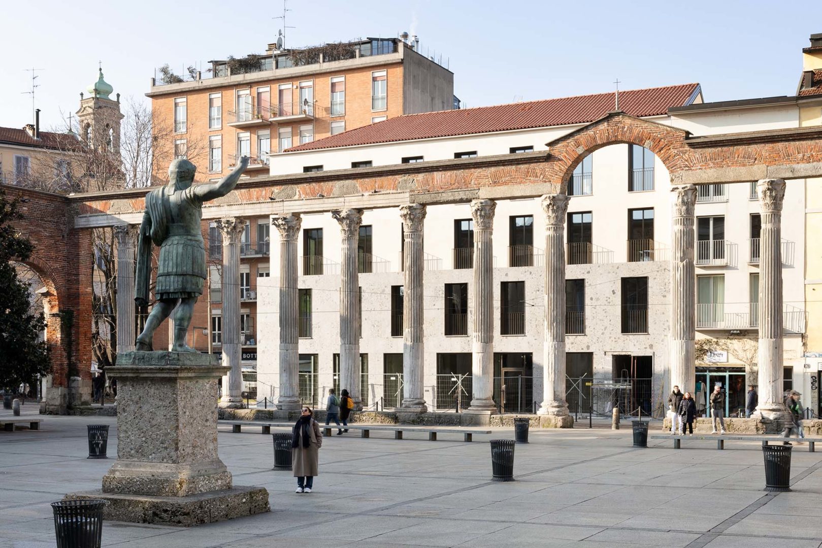 Il progetto, che integra residenze e spazi commerciali, ha riqualificato l’area circostante, ricostruendo il tessuto storico antistante le Colonne di San Lorenzo.
