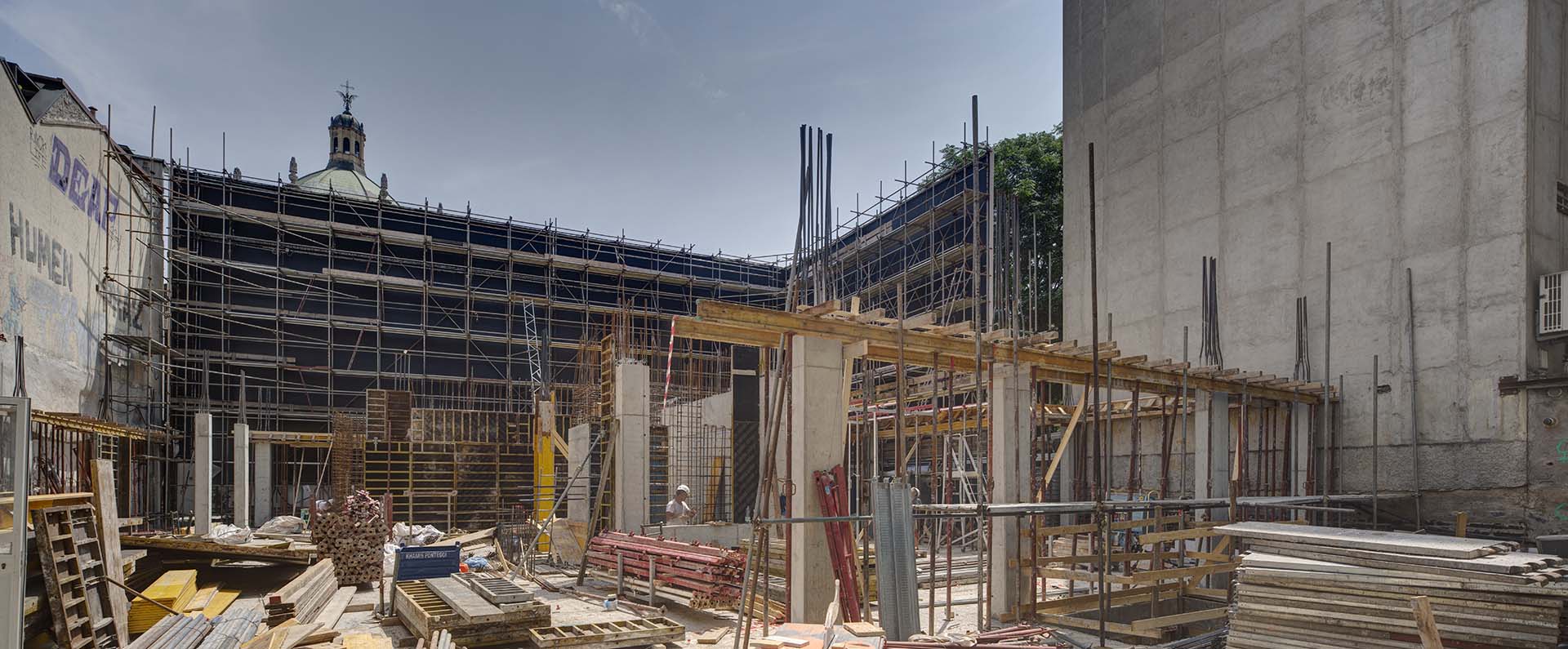 Per la realizzazione degli scavi, eseguiti dal Gruppo Building, sono stati movimentati 4.797 m³ di terreno, con lo smaltimento di oltre 9.700 tonnellate di materiale contaminato e 1.550 tonnellate di macerie da demolizione, prestando particolare attenzione al patrimonio artistico.