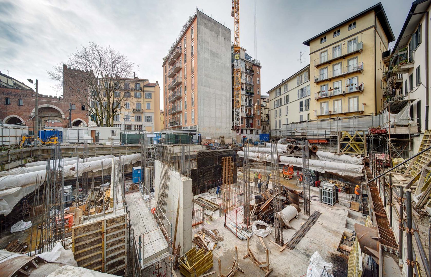 Il cantiere del Gate Central, di fronte alle Colonne di San Lorenzo e all’omonima Basilica