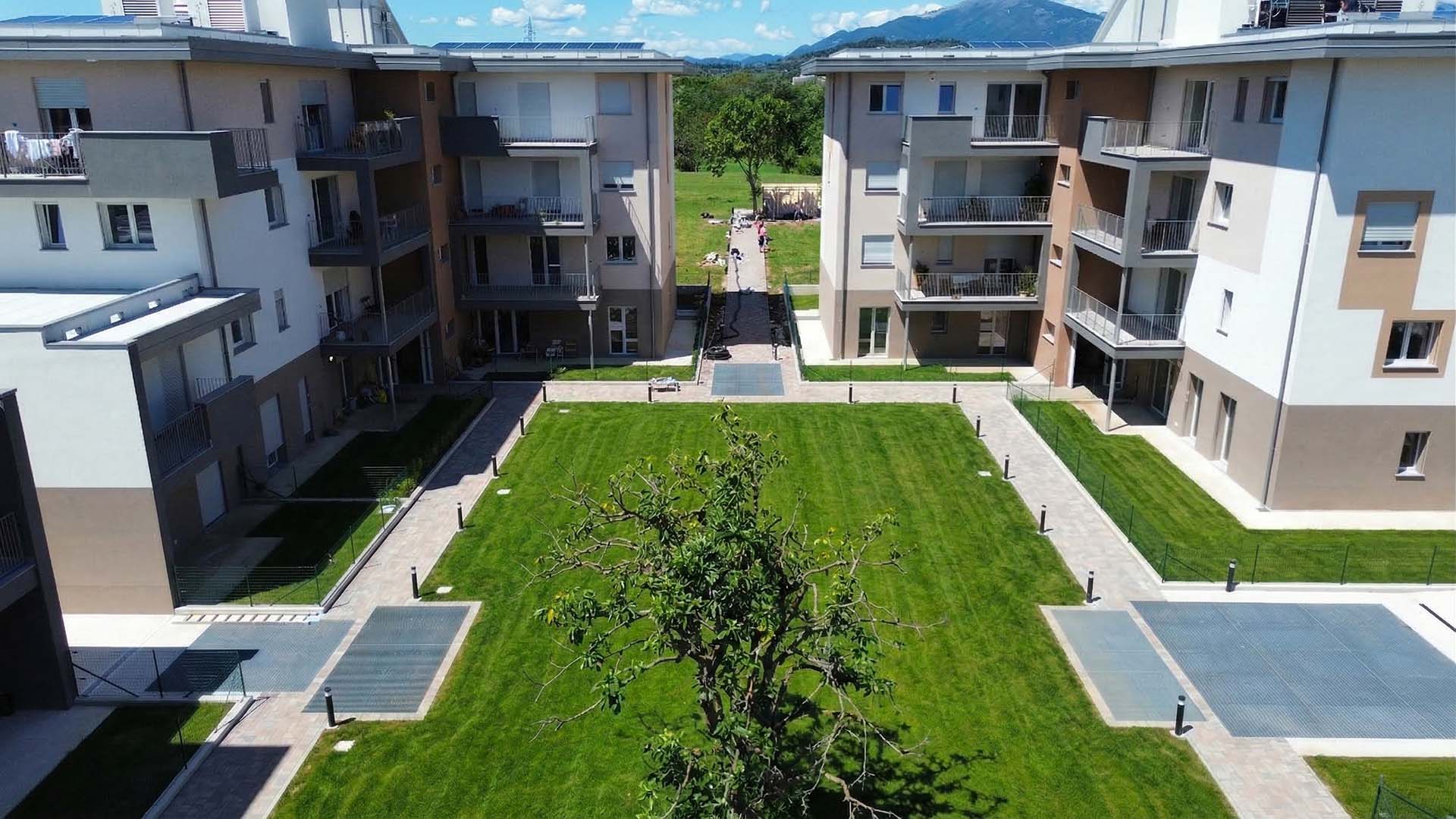 Tutti gli edifici sono alimentati esclusivamente da energia elettrica, eliminando l’uso di fonti fossili e contribuendo al raggiungimento della classe energetica A4.