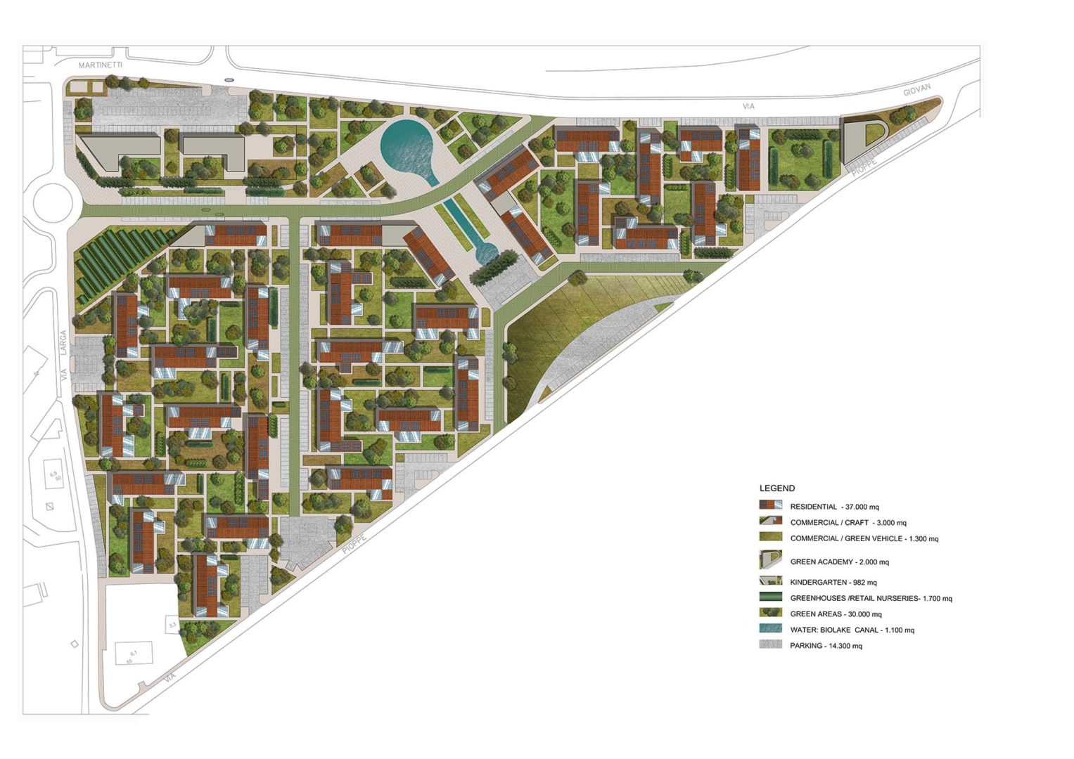 Il progetto si sviluppa nella zona nord-orientale della città e propone un nuovo modello di insediamento residenziale, dove l’architettura dialoga con il paesaggio e la natura diventa parte integrante della vita quotidiana.