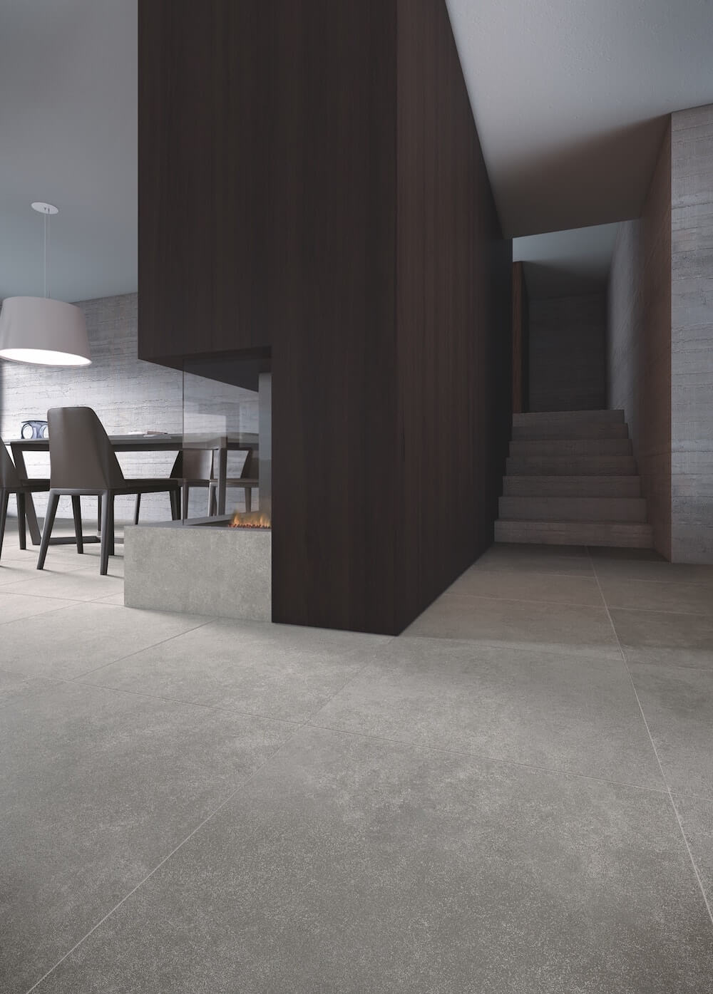 Econcrete è disponibile in due formati, con superficie naturale e grip, adatta per un utilizzo sia pavimentazione interna che esterna.