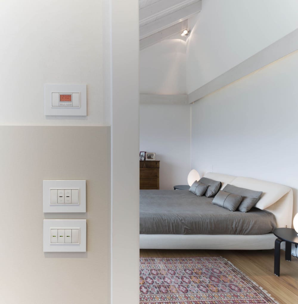 Infine, dal punto di vista estetico, la scelta della serie Eikon Evo nella versione bianco totale ha fatto sì che prese, comandi e placche che vi fanno da cornice, si integrassero perfettamente, diventando un tutt’uno con il contesto architettonico che caratterizza gli interni.