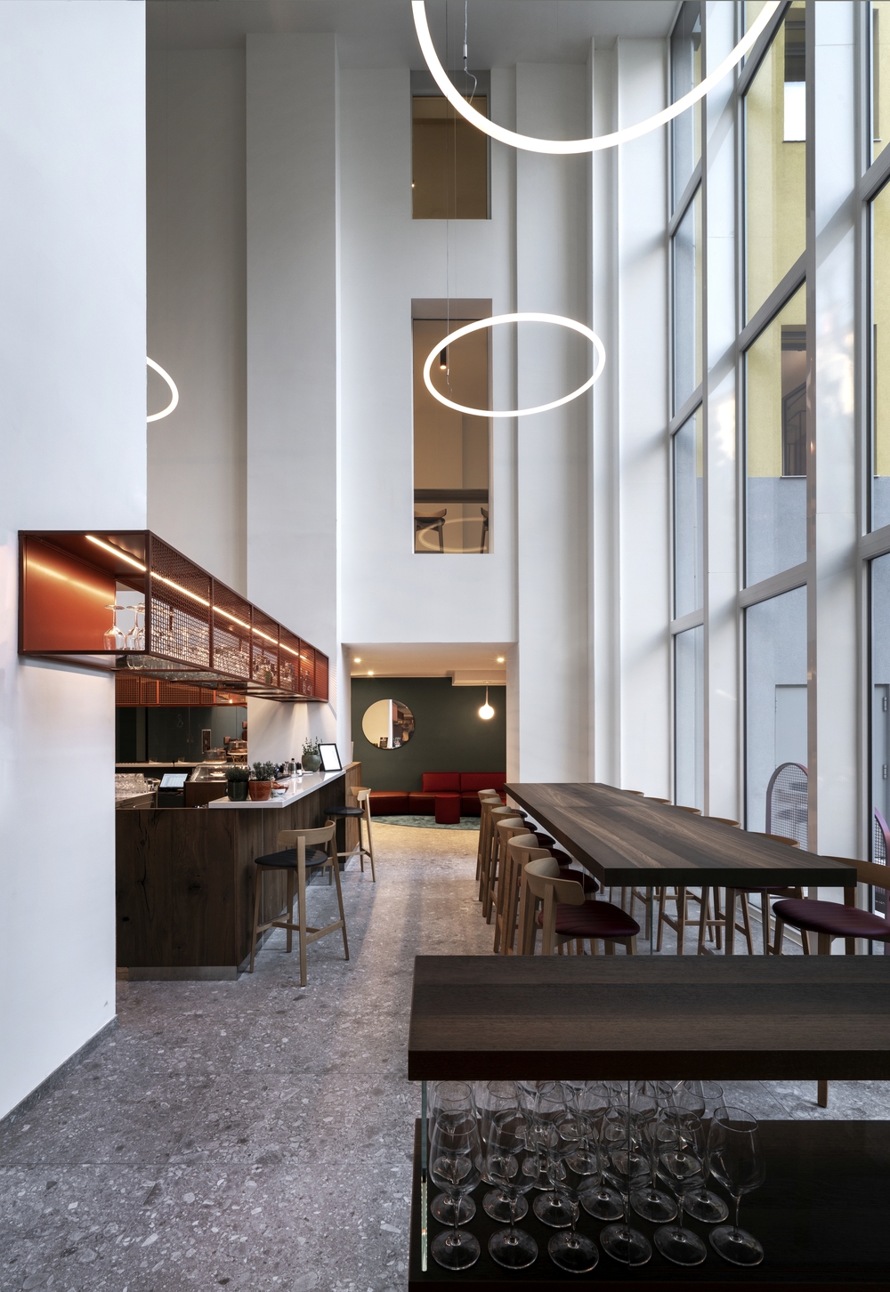Il progetto di riqualificazione porta la firma dell’architetto Roberto Murgia, in collaborazione di Rizoma Architetture per il concept di interior design. Fulcro dell’intervento è la hall a tripla altezza, che mette in comunicazione non solo i due volumi del complesso e il giardino, ma diventa anche spazio di connessione fruibile e modulabile per le numerose attività della community.