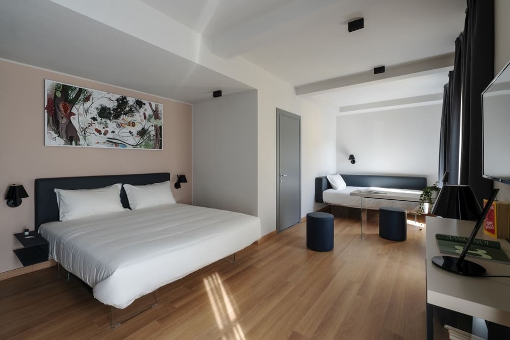 Nel cuore di Città Studi a Milano, 21 Wol è non solo un posto dove dormire, ma un luogo di condivisione e di incontro aperto agli abitanti del quartiere, ai viaggiatori, agli studenti. L’edificio, nato dalla riconversione funzionale di un immobile degli anni Trenta, si estende su una superficie di circa 5.000 mq e si compone di due corpi a L, uno affacciato su Via Enrico Nöe e l’altro perpendicolare aperto che guarda gli spazi esterni.