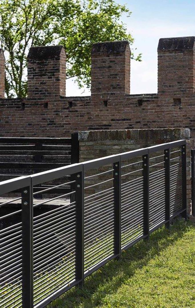 Particolare dei nuovi parapetti in metalli realizzati da Gonzato Group presso la Rocca di Gradara