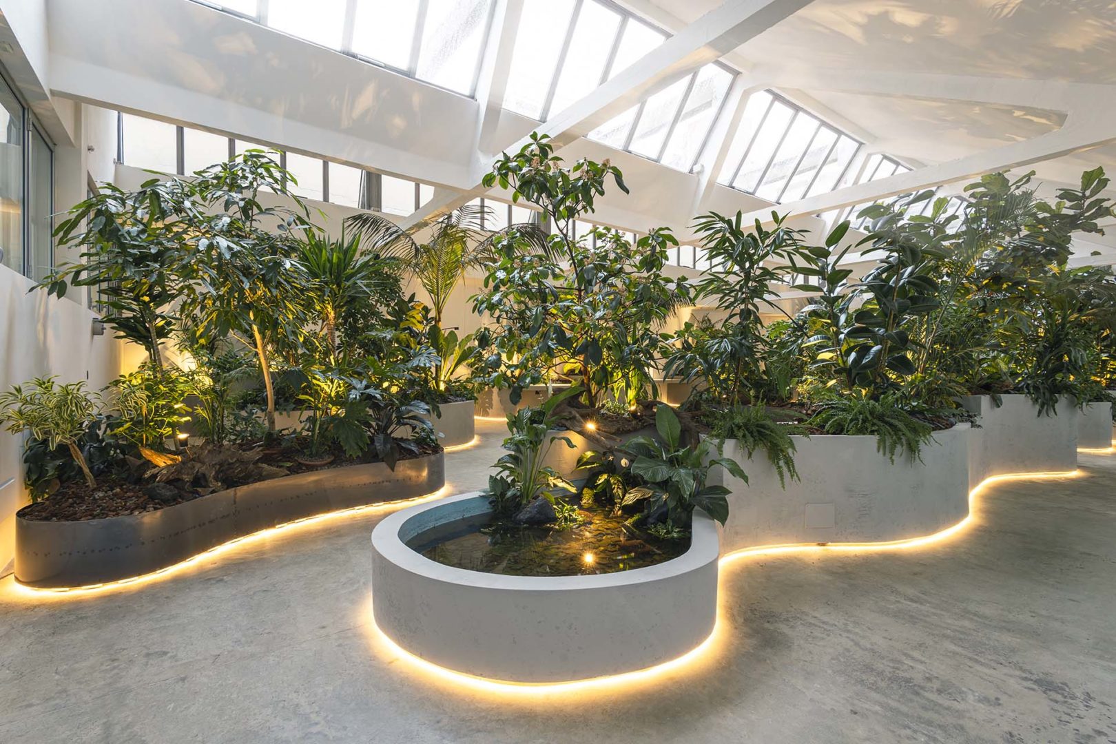 Non un semplice ufficio, ma un ecosistema architettonico che integra produzione, creatività e natura all’interno di un giardino con oltre 80 piante di grande dimensione, trasformando lo spazio di lavoro in un organismo vivo e adattivo.
