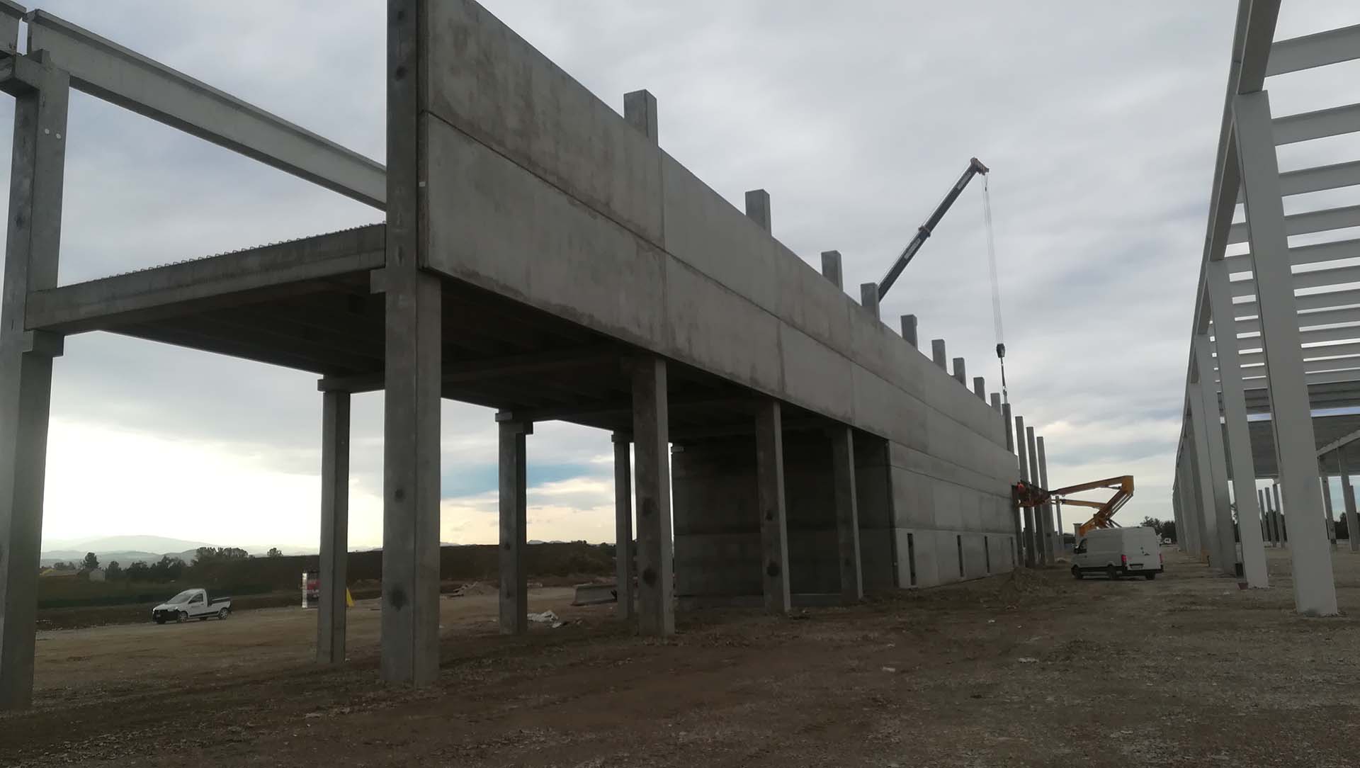 Lo zoccolo dell’edificio è stato realizzato con pannelli prefabbricati in calcestruzzo armato precompesso mentre per le tamponature sovrastanti sono stati utilizzati pannelli sandwich caratterizzati da un alto potere isolante, resistenza all’acqua e all’umidità, bassa conducibilità termica, leggerezza e un’ottima resistenza al fuoco.