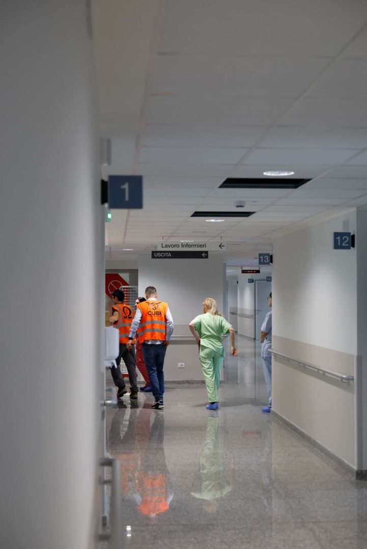 Cubi ha inoltre curato l’adeguamento degli impianti elettrici a supporto dei trasferimenti delle attività e il ripristino delle compartimentazioni antincendio. L’entrata in funzione del nuovo edificio ha permesso di liberare spazi nella struttura esistente, dove sono stati avviati ulteriori lavori, tra cui la realizzazione del nuovo reparto di sterilizzazione.