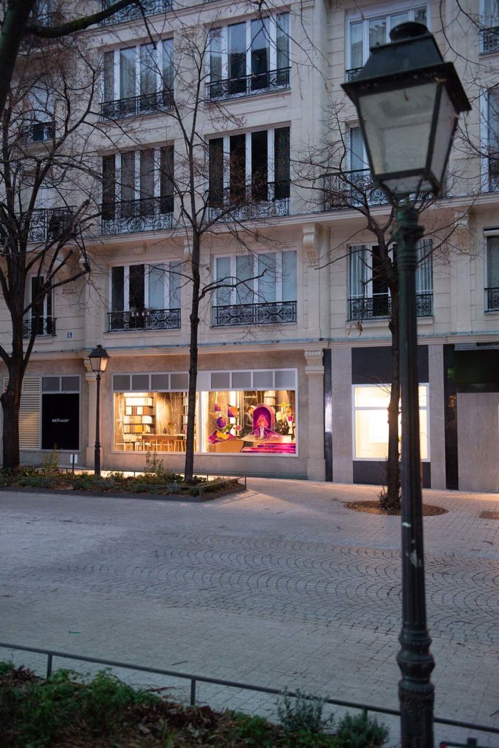All’esterno, la vetrina è animata dall’opera di Héléna Soubeyran, realizzata con vernici acriliche e pennarelli.