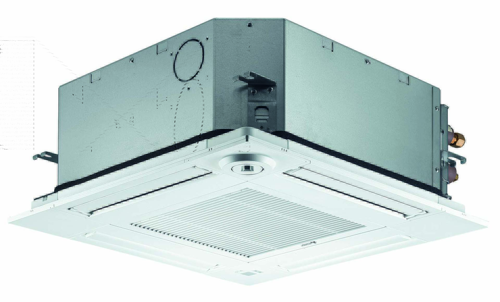 Le novità nell’ambito dei prodotti a espansione diretta non finiscono qui. L’azienda propone, infatti, una nuova griglia in versione nero per cassette 4-vie 90×90 (Plfy Vem) per ambienti sofisticati e di design. Si accoppiano perfettamente con il comando remoto Prisma nero (Par-CT01Maa-PB), nonché la nuova unità interna Vrf City Multi pavimento a vista (Pffy-P Vem-E).