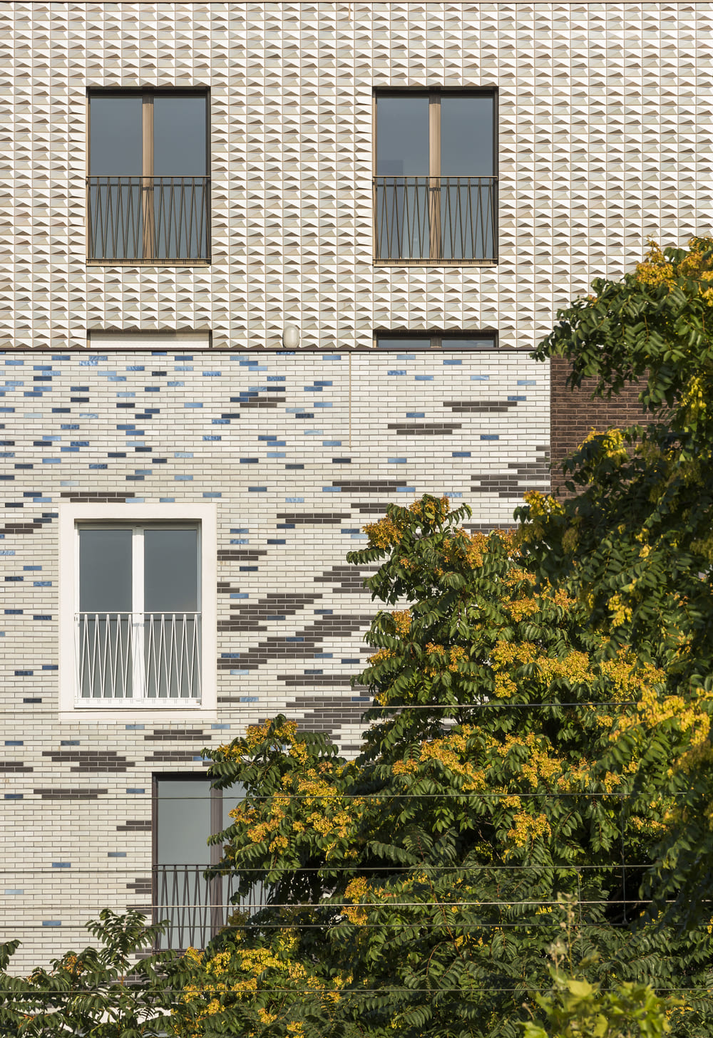 Le due facciate situate sul bordo del sito beneficiano di un trattamento particolare. La facciata nord si affaccia sull’area di fronte alla stazione dei treni regionali ad alta velocità RER e funge da ingresso alla zona di sviluppo urbano. Il negozio al piano terra ha una facciata interamente vetrata. Per quanto riguarda la facciata sud presenta il volto urbano del progetto insieme al parcheggio, ed è in totale contrasto con la facciata vetrata a nord.