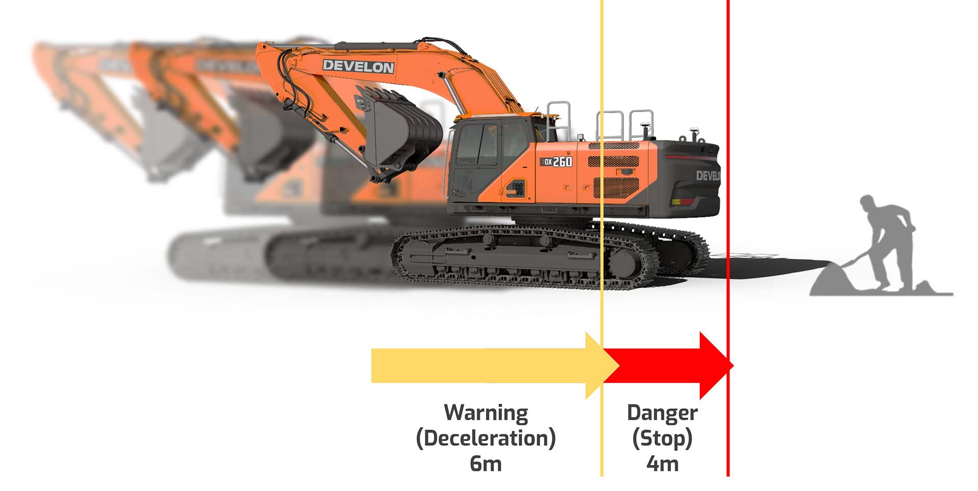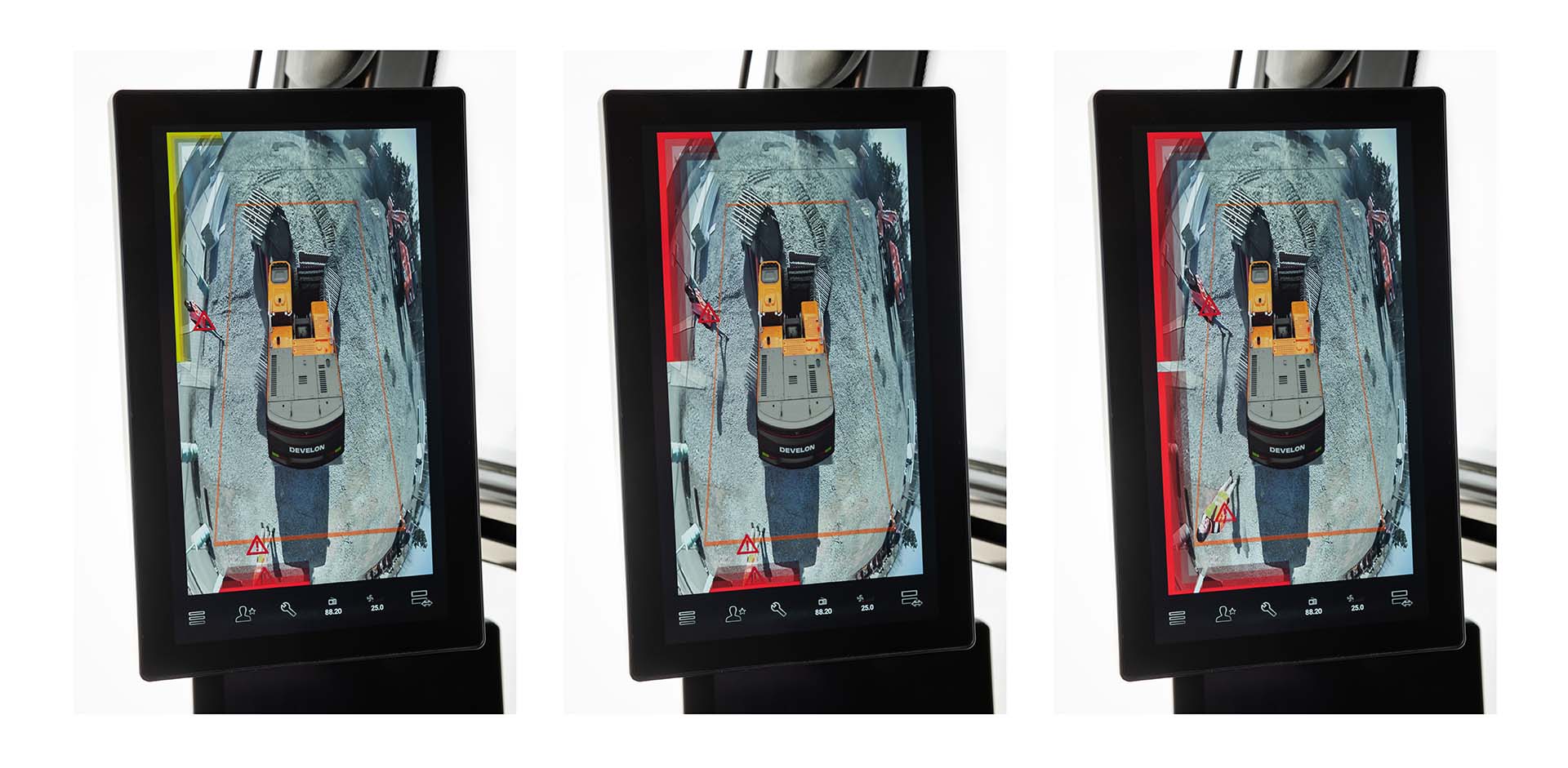 Le nuove soluzioni Develon rispondono a queste criticità con sistemi capaci di monitorare l’area circostante, rilevare la presenza di persone e intervenire automaticamente per evitare collisioni.