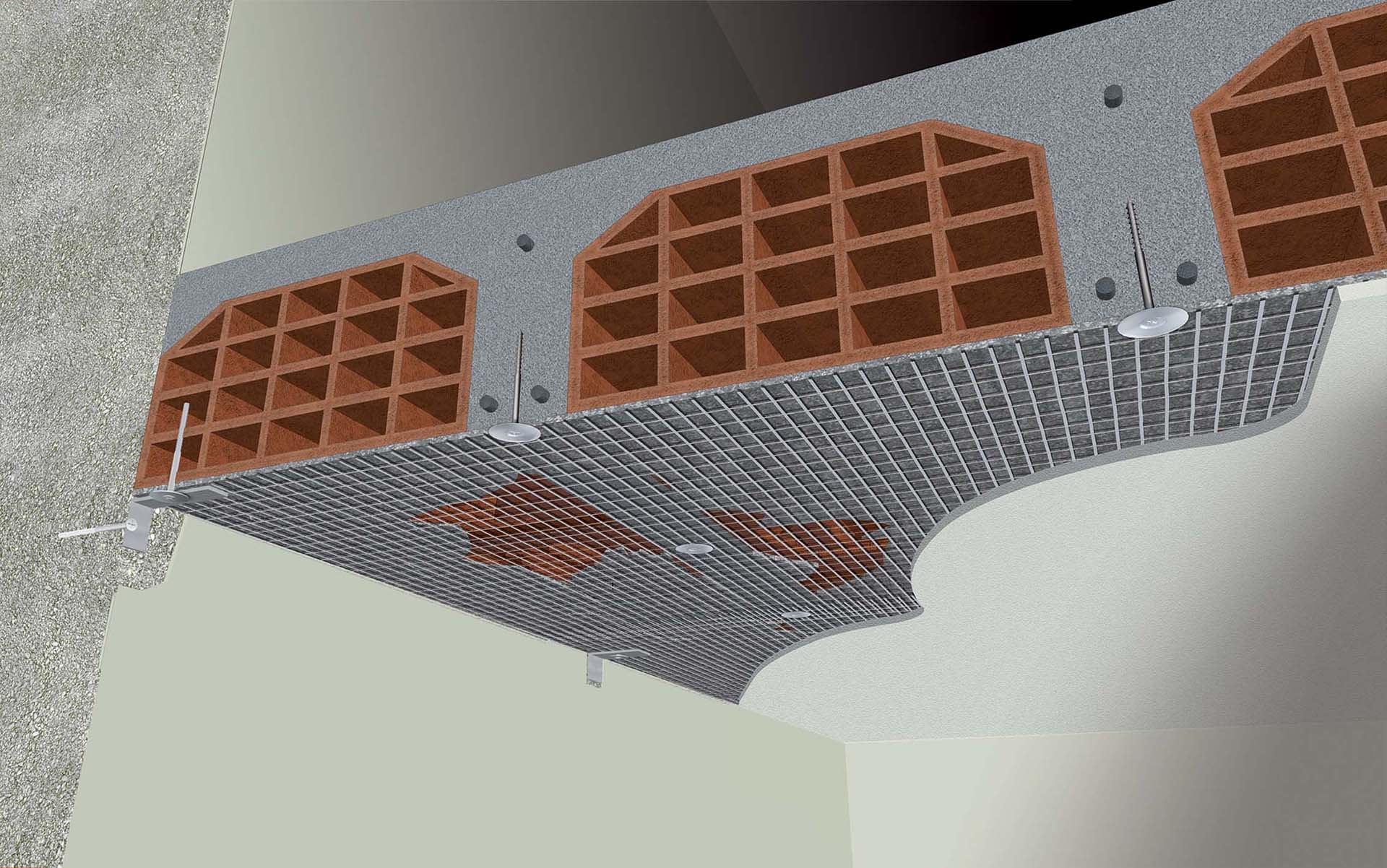 La loro presenza ha sia una funzione di alleggerimento sia collaborante. Purtroppo la compromissione anche parziale e il cedimento possono provocare danni importanti alle opere e alle persone. Perciò per la messa in sicurezza Laterlite propone il sistema composito Ruregold SafeNet: