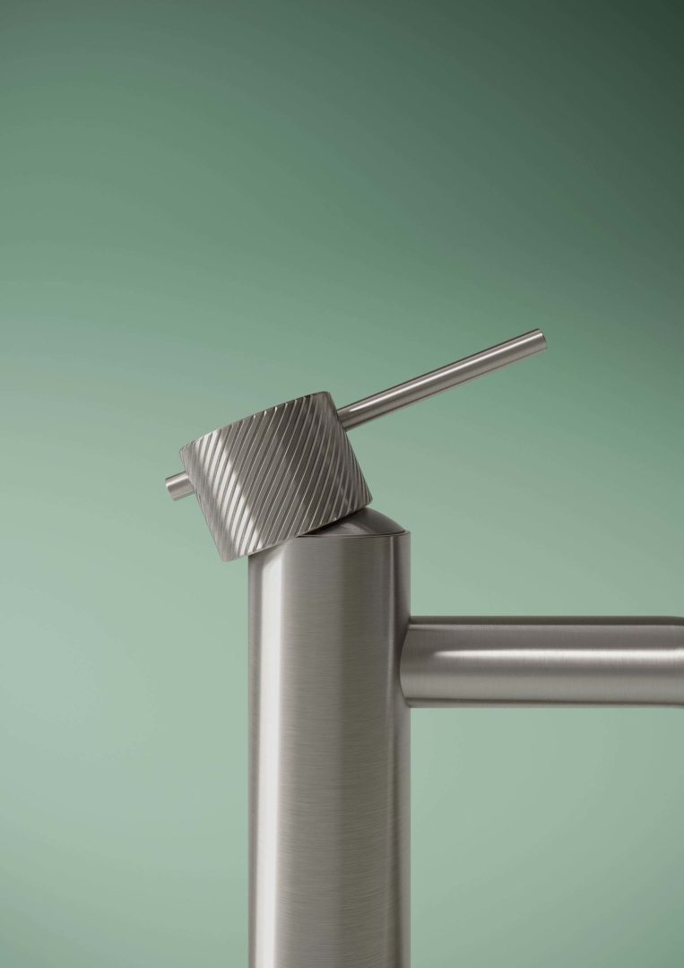 Il suo team Spatium ha affiancato il reparto R&D dell’azienda piemontese per dare vita a una rubinetteria bagno (e angolo bar o mini-kitchen) dalla linea archetipica.